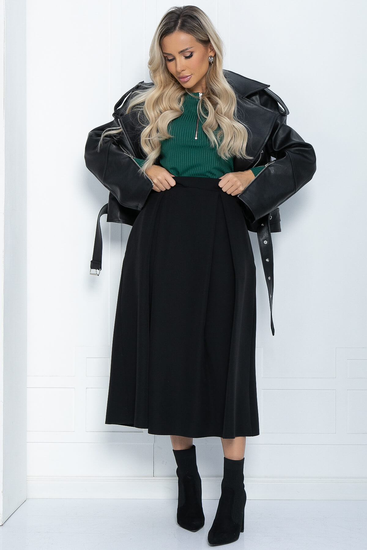 Юбка-трапеция — это универсальная вещь в женском гардеробе, которая поможет создать множество стильных образов. Её можно носить с различными блузками, футболками, топами или рубашками. Она идеально подходит для офисной атмосферы, деловых встреч и вечерних мероприятий. Резинка в поясе вставлена только по спинке, передняя часть пояса дублирована клеевой.