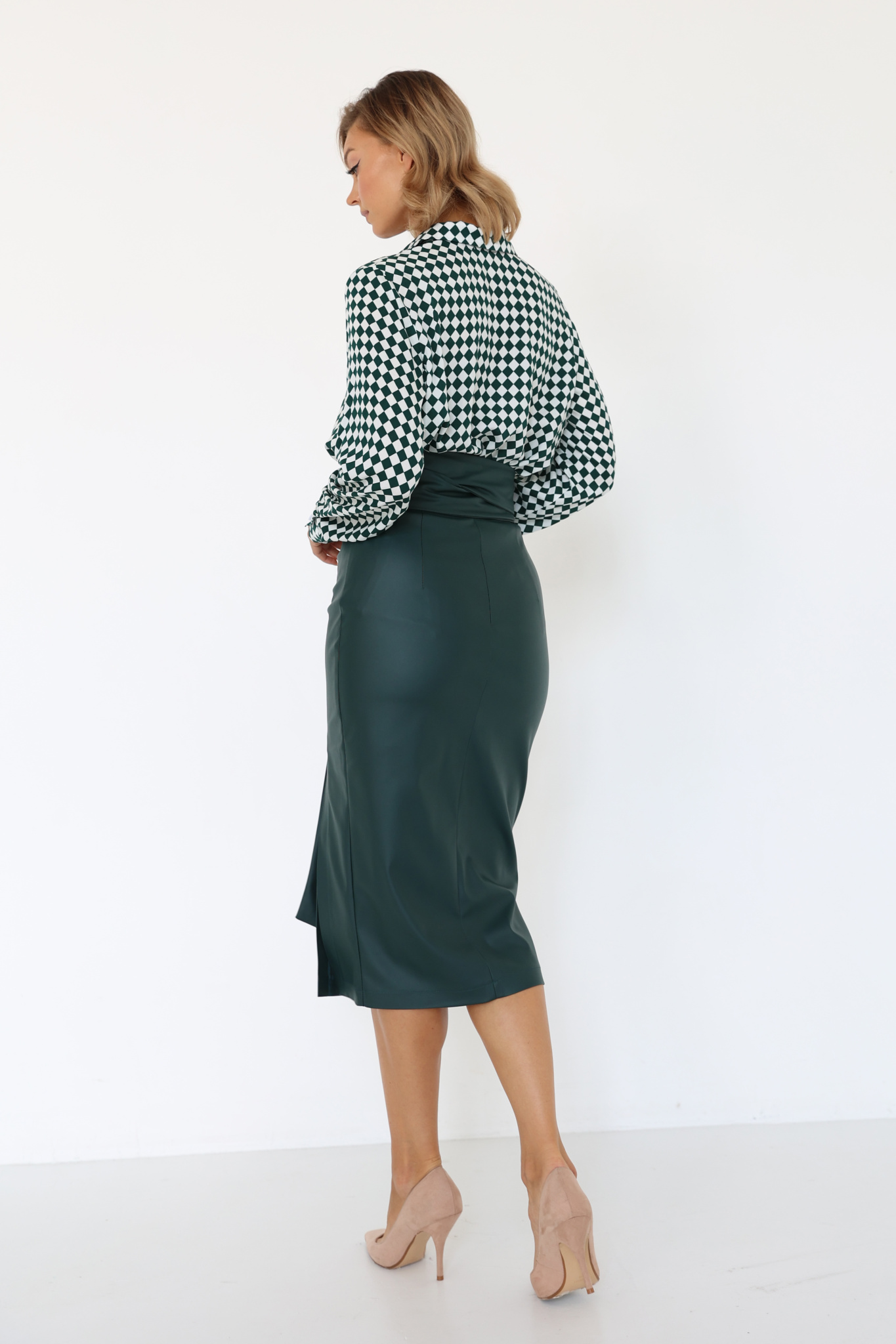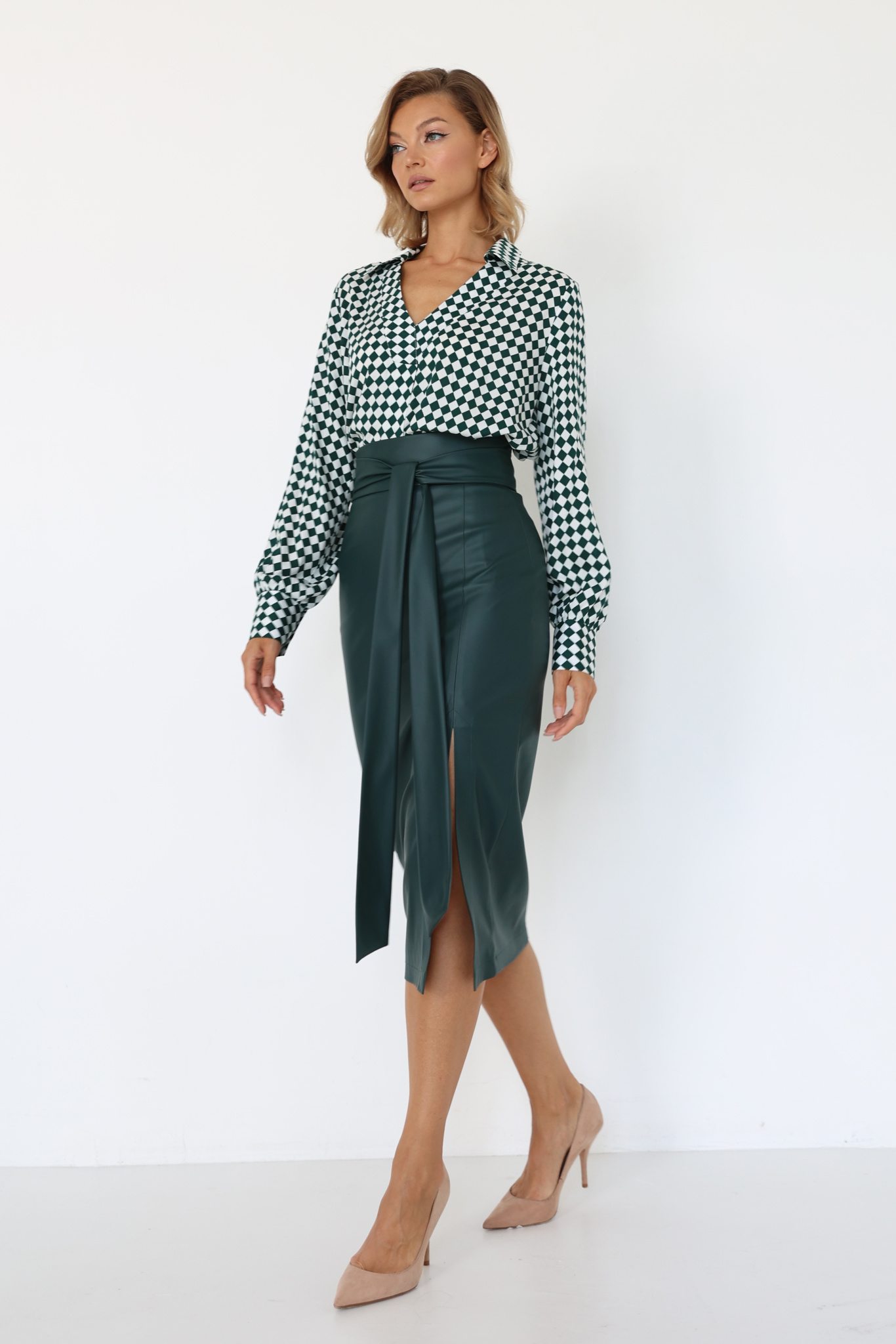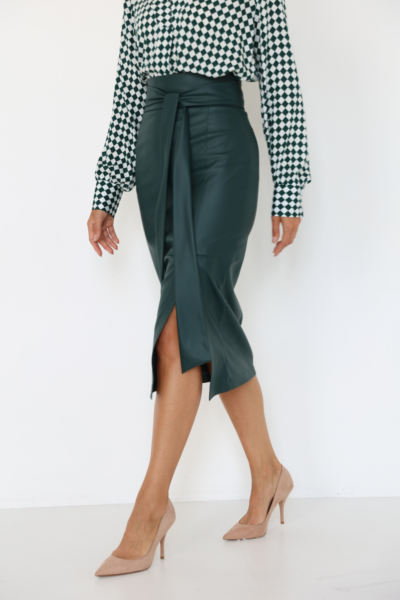 Юбка миди из экокожи с разрезом
