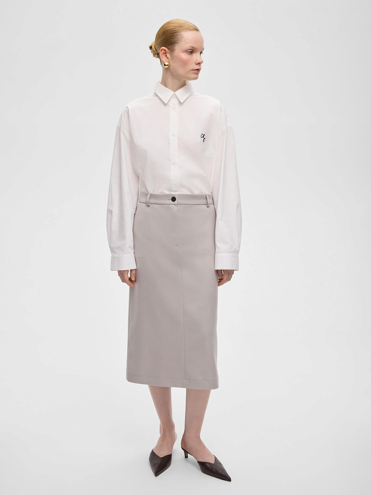 Юбка миди прямая, светло-серый