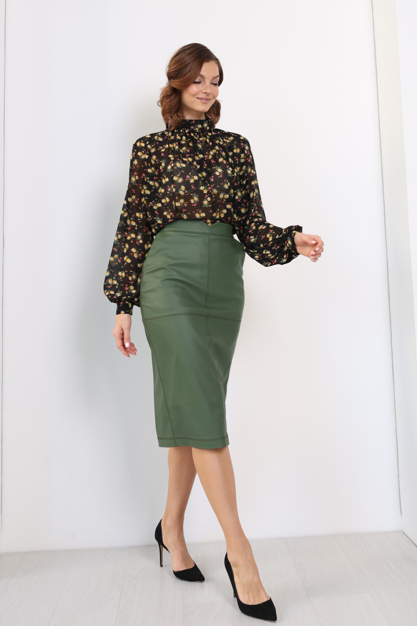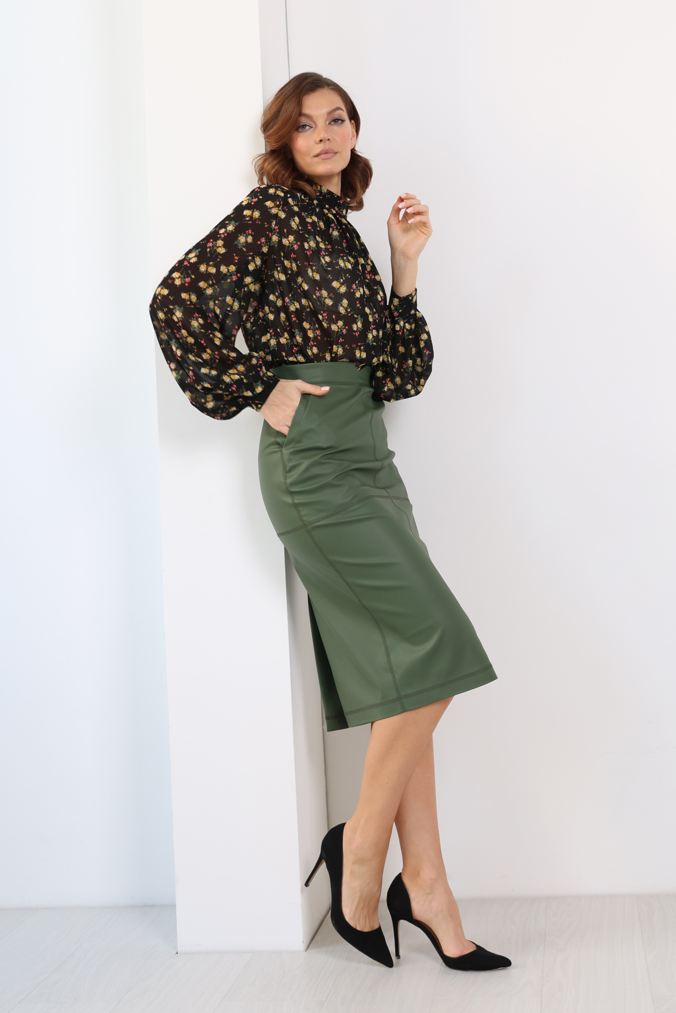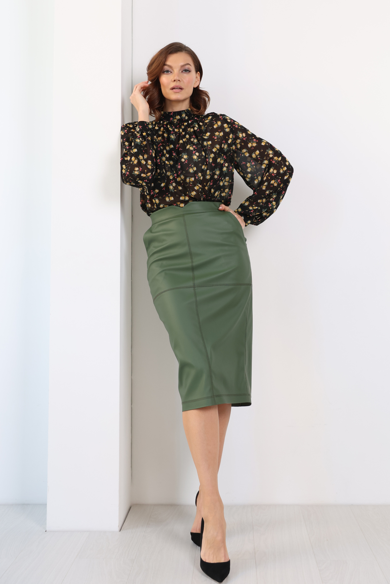 Юбка миди с отстрочкой по швам
