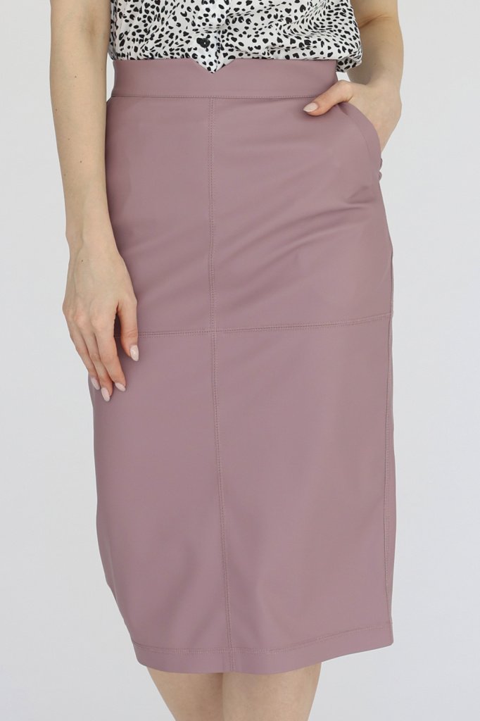 Юбка миди с декоративной отстрочкой по швам, притачным поясом, карманами в боковых швах, застежкой на молнию в среднем шве спинки и шлицей.
