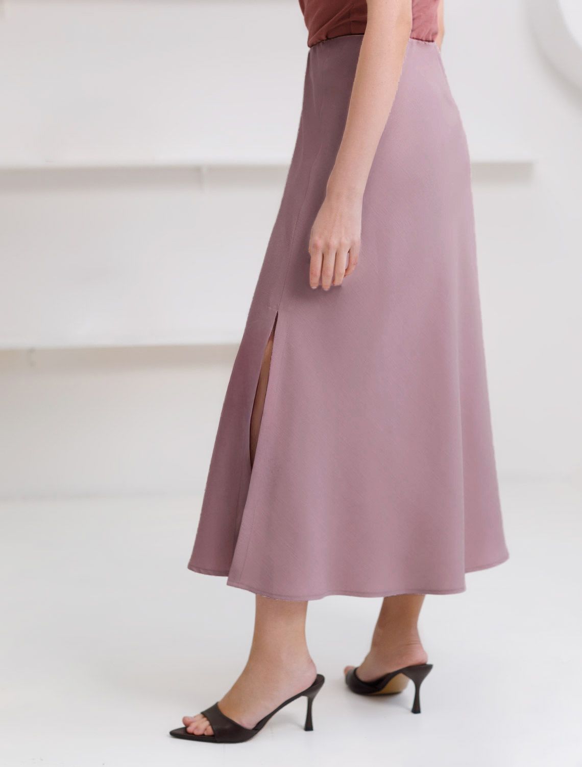 Юбка миди с разрезом скроенная по косой из плотного лиоцелла