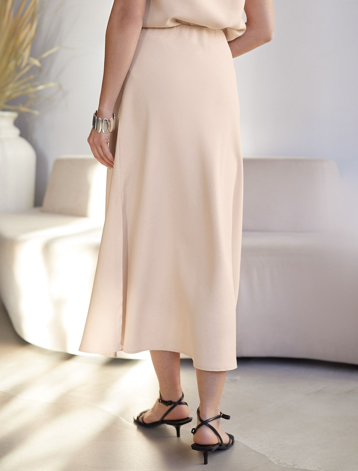 Юбка миди с разрезом скроенная по косой из плотного лиоцелла