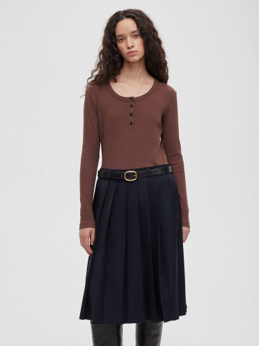 Изготовленная из качественной костюмной ткани на подкладке юбка оснащена потайной застежкой и акцентной пуговицей спереди, что подчеркивает её изысканный дизайн и внимание к деталям. Эта модель станет универсальным элементом вашего гардероба, легко сочетаясь с различным верхом и аксессуарами.