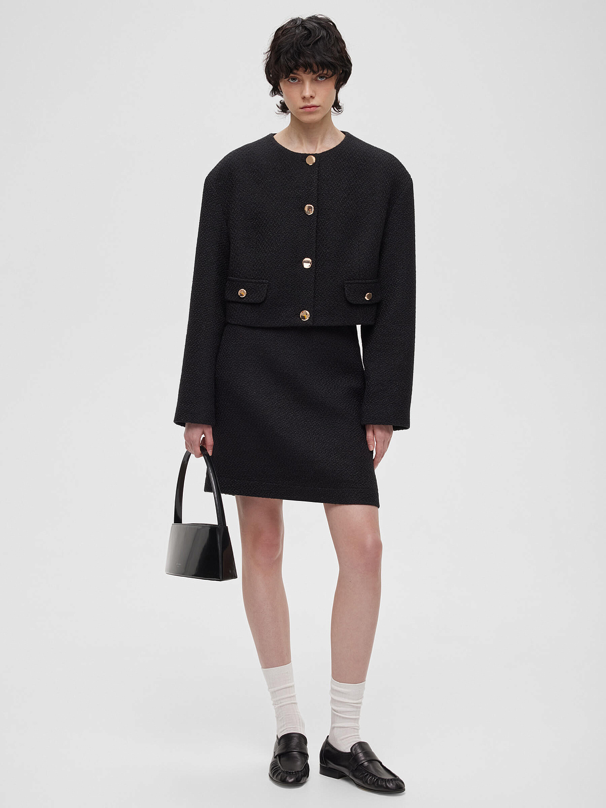 Юбка-мини из шерсти прямого кроя с застежкой на молнии.