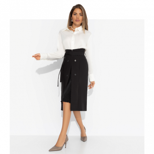 Новая юбка для новой жизни. Выверенный силуэт, плавность линий и оттенок ткани юбки ЧАРУТТИ словно говорит: «Я больше не бегу. Я красиво дефилирую вперед!». Лёгкая расклешённость подола напоминает – даже резкие повороты могут быть элегантными. Теперь каждый взгляд в зеркало – комплимент самой себе. Юбка в длине миди приталенного силуэта. Посадка высокая на талии. Декоративные строчки по полотну изделия вытягивают силуэт. Юбка подчеркивает женственность форм. Застегивается на скрытую молнию сбоку.