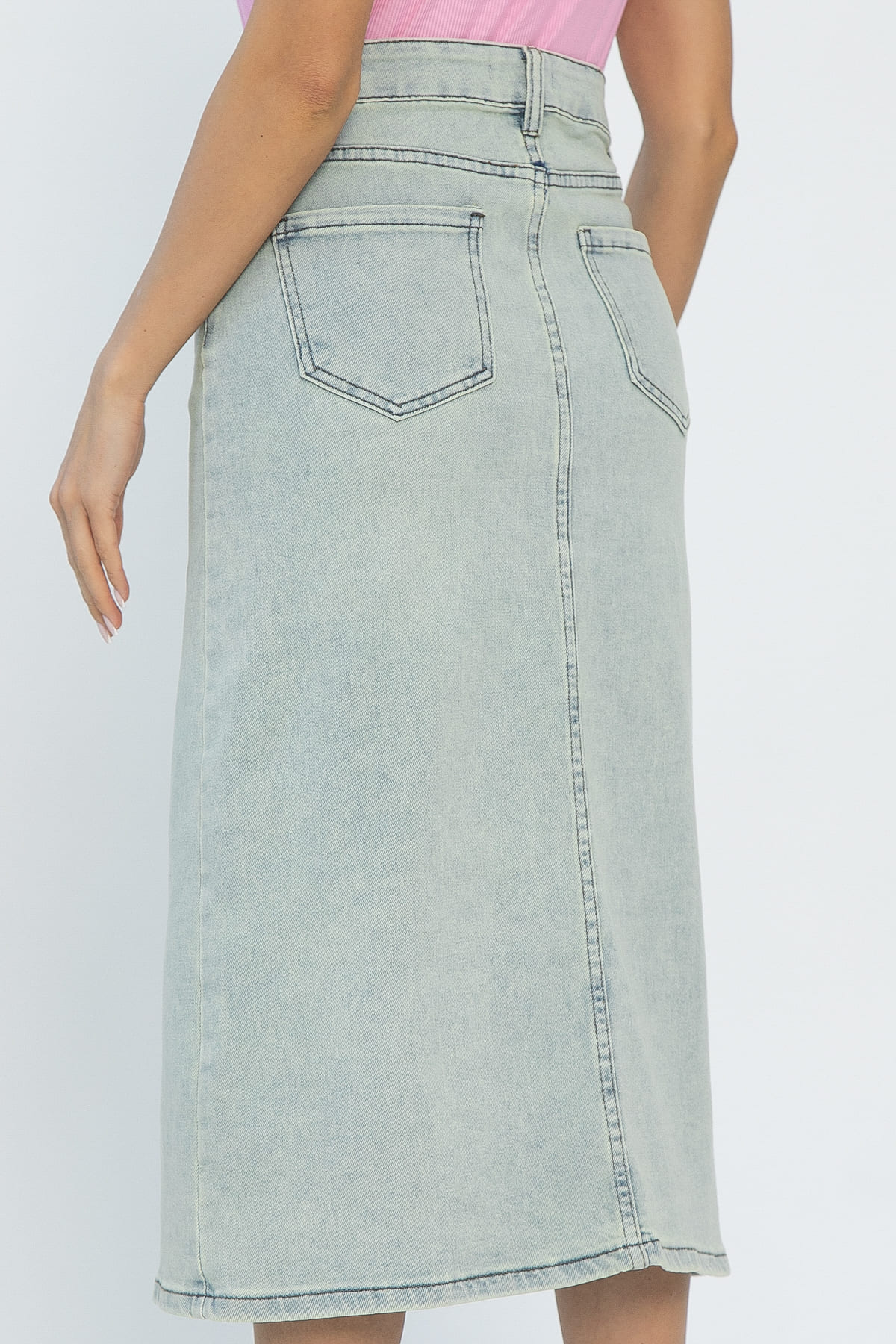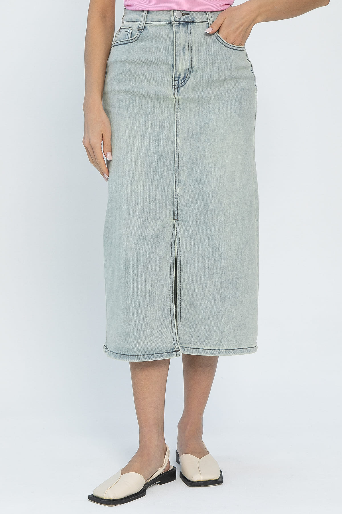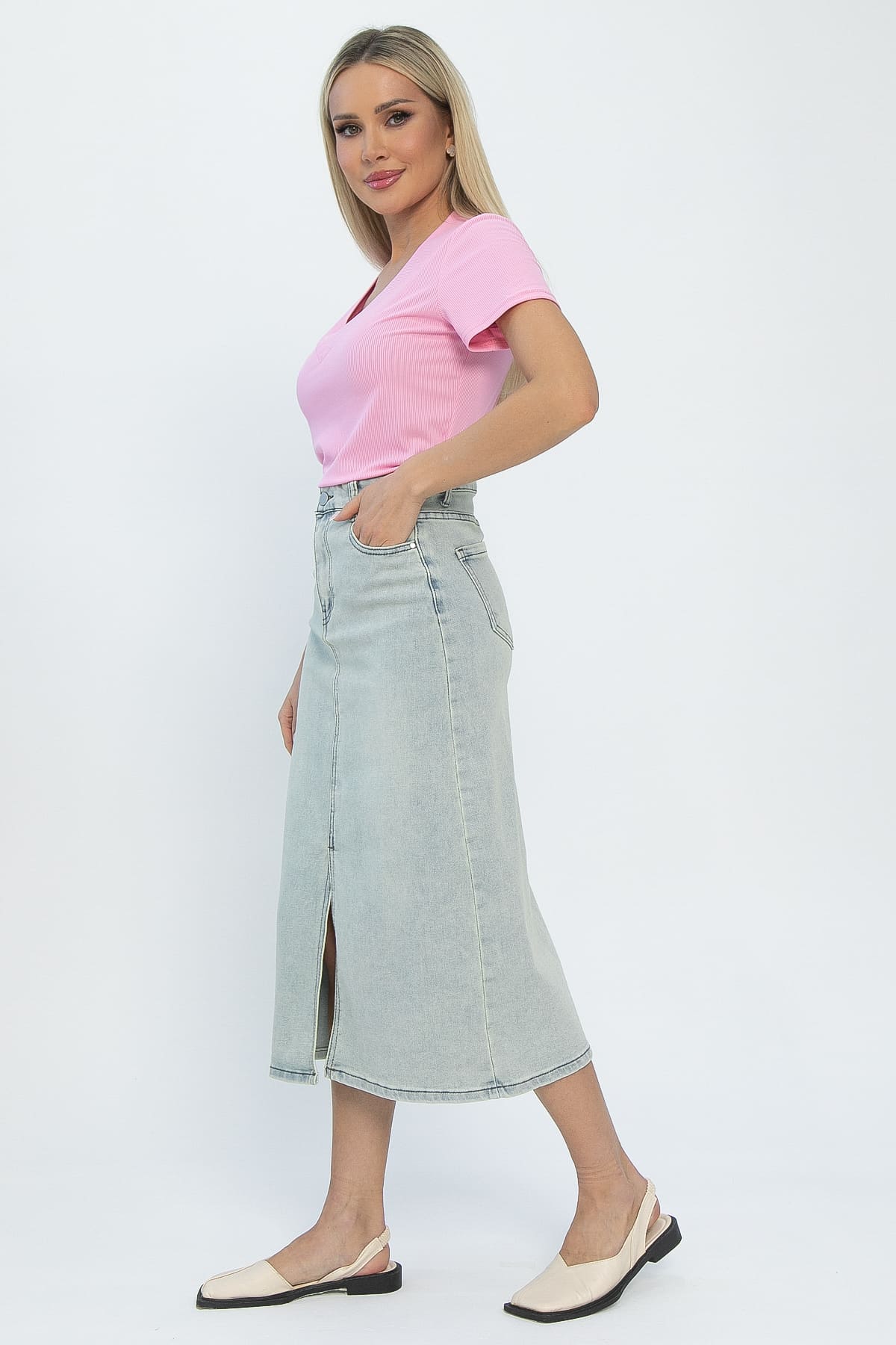 Джинсовая юбка — стильный и универсальный элемент гардероба, который подчеркнет вашу индивидуальность. Разрез спереди добавляет нотку дерзости и обеспечивает удобство при ходьбе. Прямой фасон и средняя посадка гарантируют комфорт в носке, а длина миди делает её идеальной для любого сезона. Юбка оснащена карманами по бокам и сзади, что добавляет функциональности. Легко комбинируется с различными топами и обувью, позволяя создавать бесконечное количество casual образов.