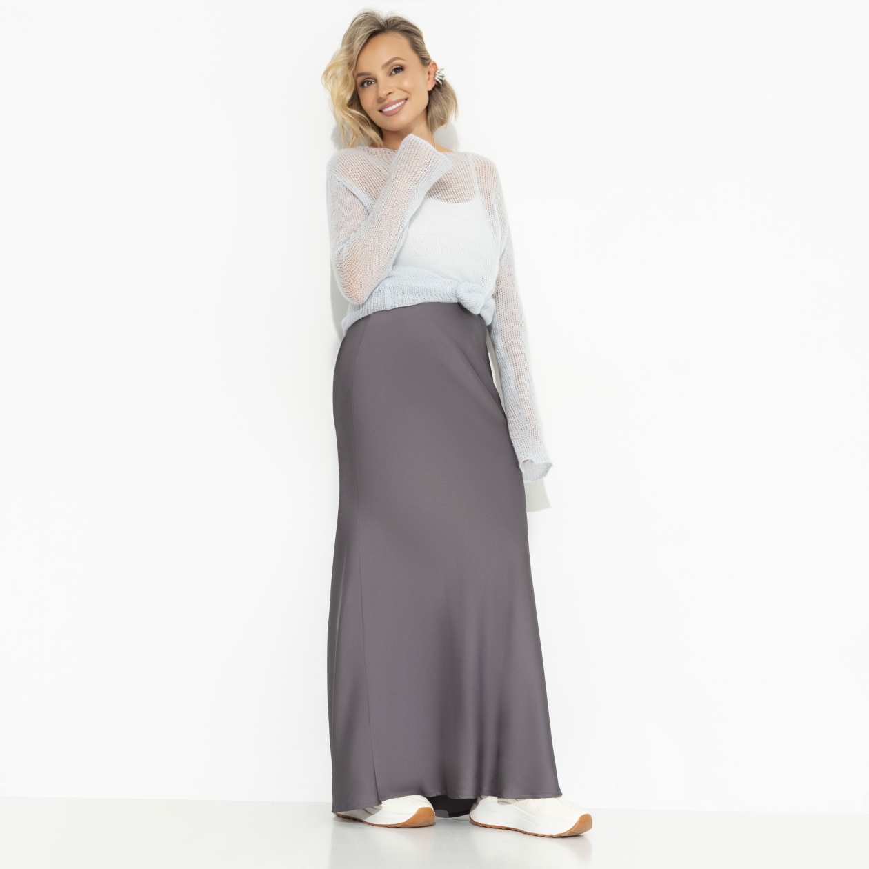 Интегрироваться в высшее общество легко. Пара вежливых слов, нитка жемчуга, короткое упоминание о том, что ваша бабушка играла в гольф и юбка в цвете пепла выкуренных сигар от CHARUTTI. Вуаля! Вход открыт. Юбка приталенного силуэта в длине макси. Высота посадки регулируется. Талия изделия на тонкой вшитой резинке. Подклада нет.