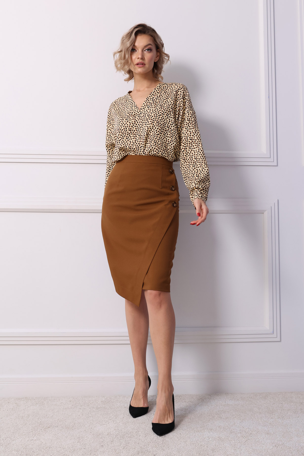 Юбка из костюмной ткани с полукруглым запАхом и пуговицами. Изделие выполнено на подкладке.