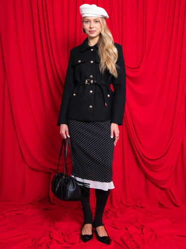 Незаменимое правило принта Горох, которое всегда работает — сочетать принт с базовым оттенком, в идеале — черным или белым. Например, черный жакет или белая футболка подойдет к юбке в горох в любом цвете.
