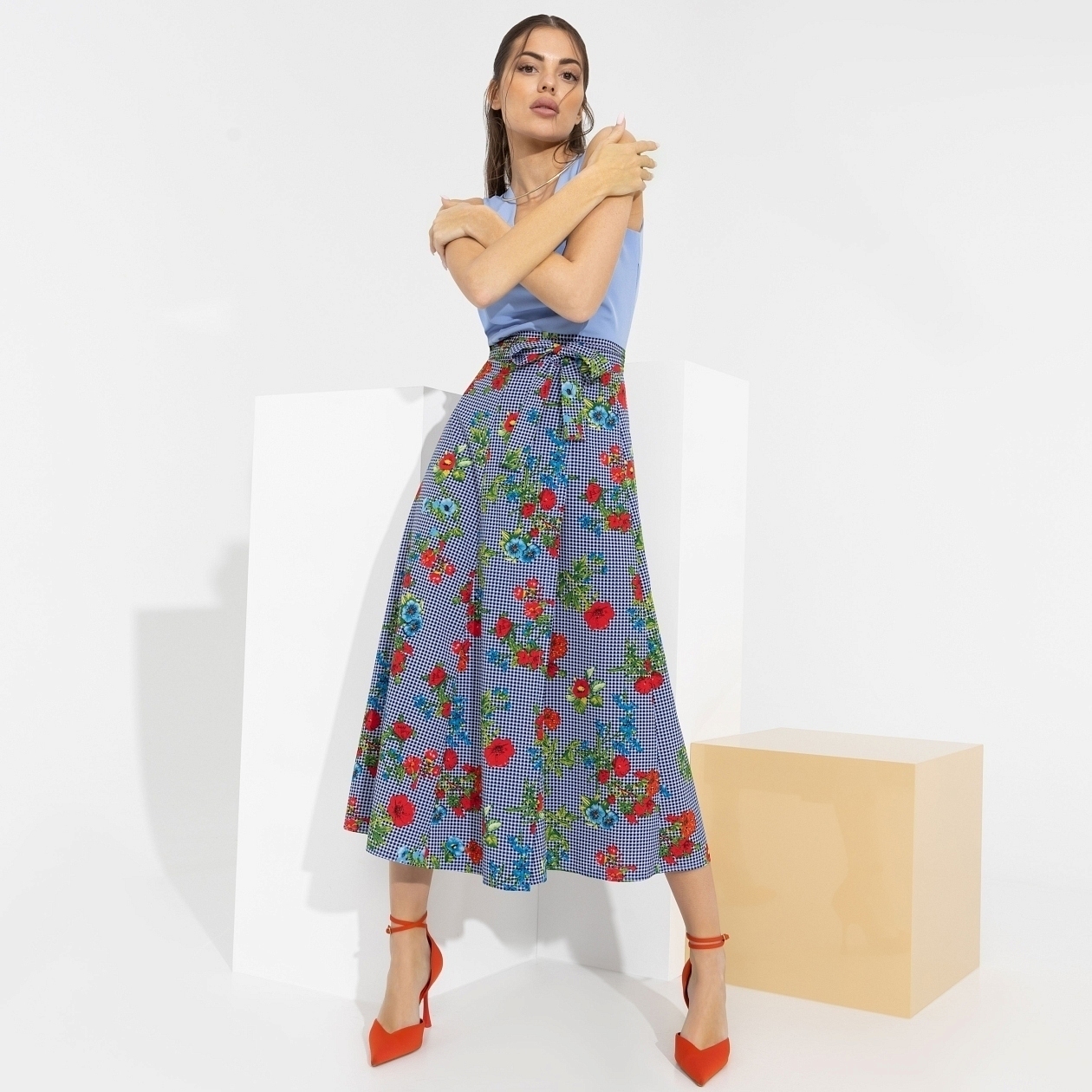 Юбка для модных бунтарок! Сочетать несочетаемое – это высший пилотаж стиля. Клетка и цветы – смело и дерзко, чтобы всем сразу стало ясно, кто тут королева.
