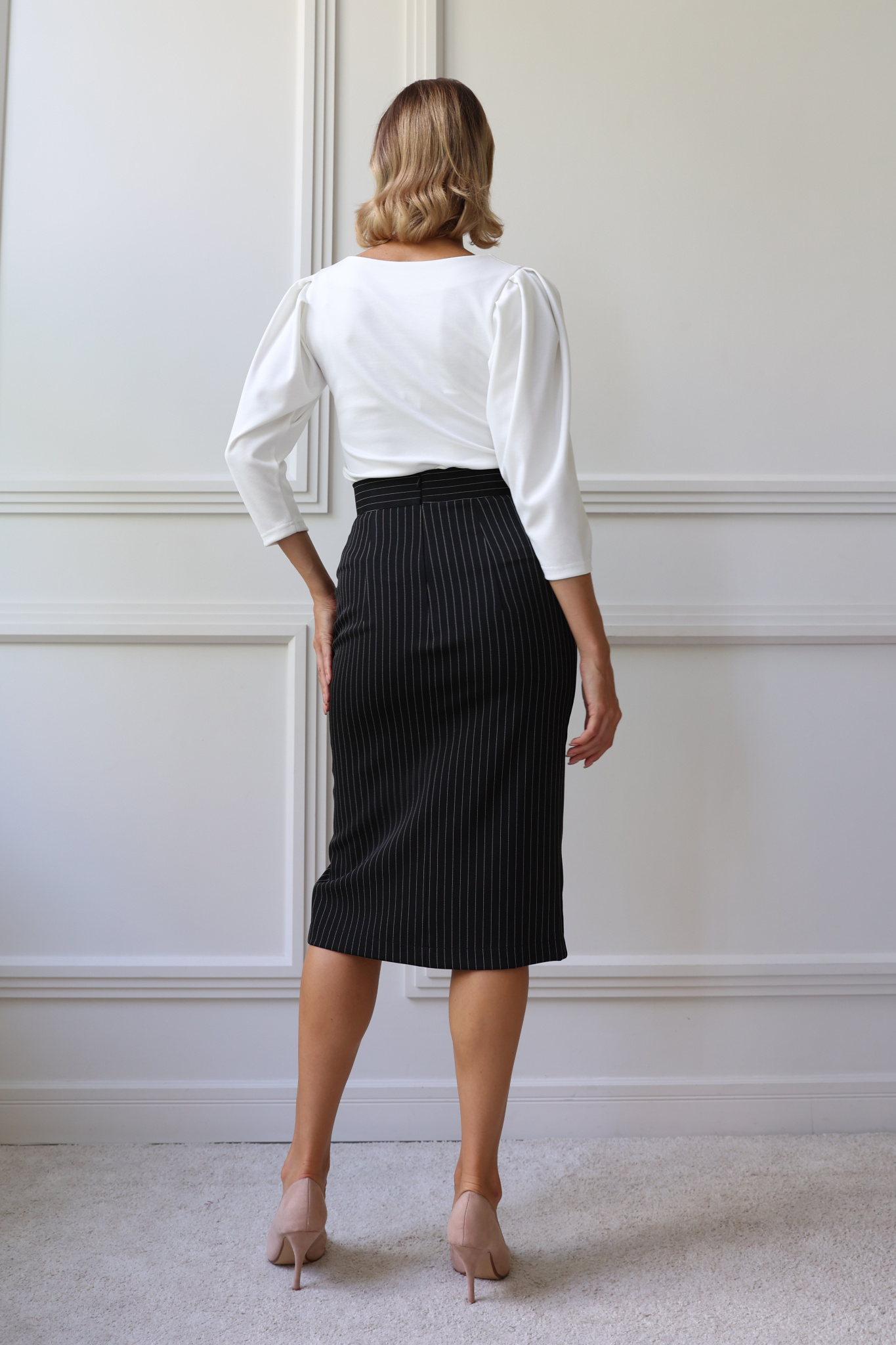 Юбка карандаш с декоративным, застроченным запАхом. Притачной пояс. Потайная застёжка-молния сзади. Изделие выполнено без подкладки.
