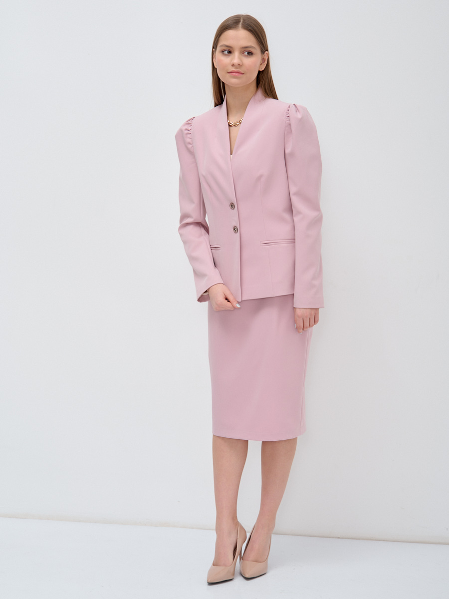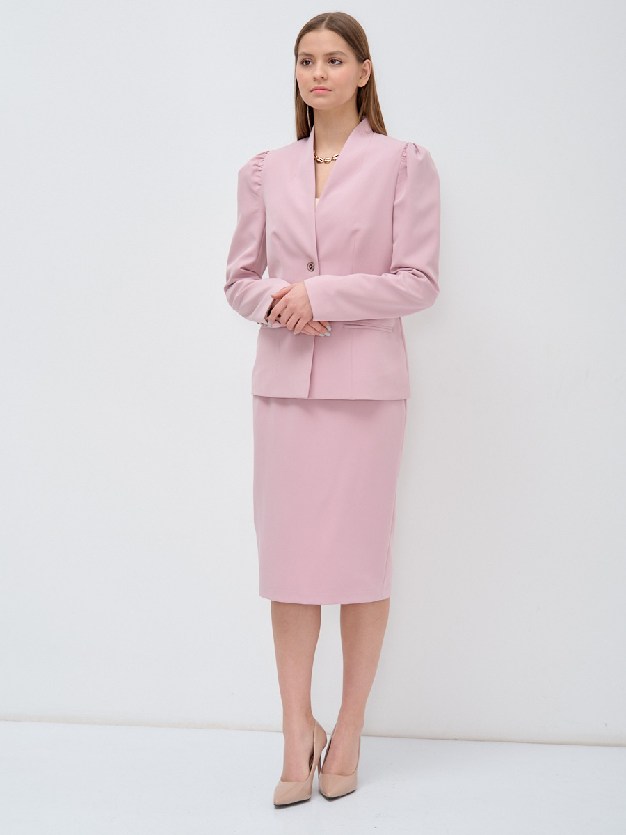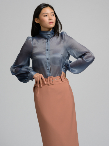 Юбка из однотонной костюмной ткани без подклада классического стиля. Внутренние швы закрыты косой бейкой. Прямой силуэт с вытачками и притачным поясом. Застежка в центральном шве спинки на потайную молнию. На заднем полотнище юбки шлица. В комплекте съемный пояс из основной ткани с обтяжной пряжкой. Рост модели 175 см. Изделие на модели 42р-ра. Длина изделия по боковому шву 67,9 см. Машинная стирка при 30°