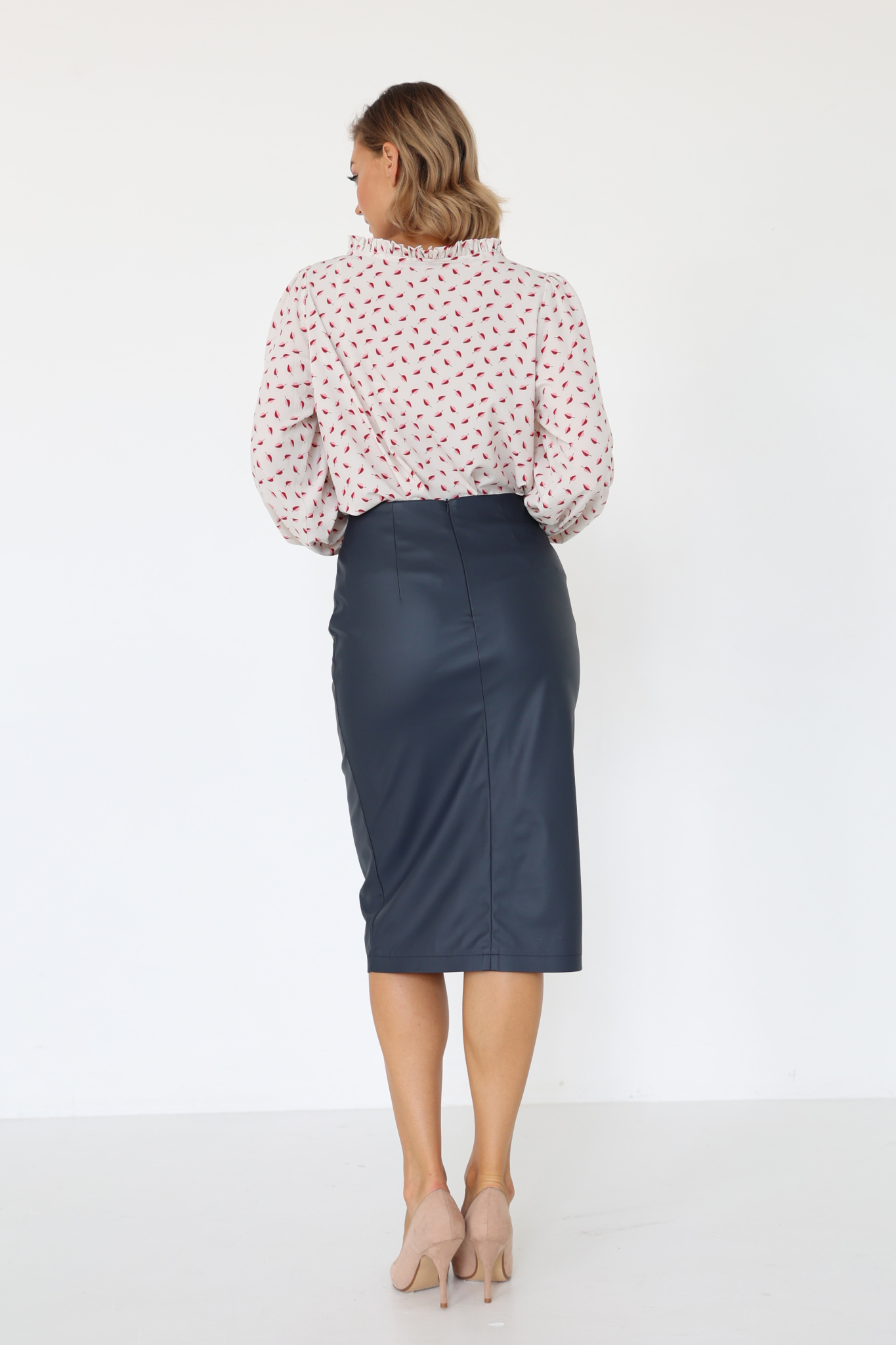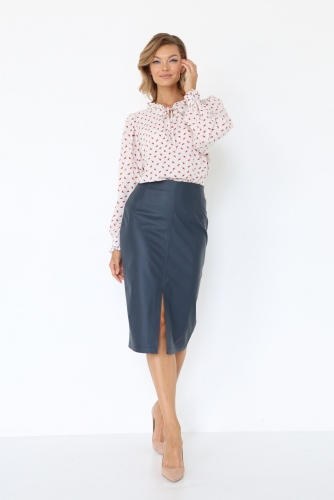 Юбка-карандаш с разрезом по переду и декоративной отстрочкой. Изделие выполнено без подкладки.