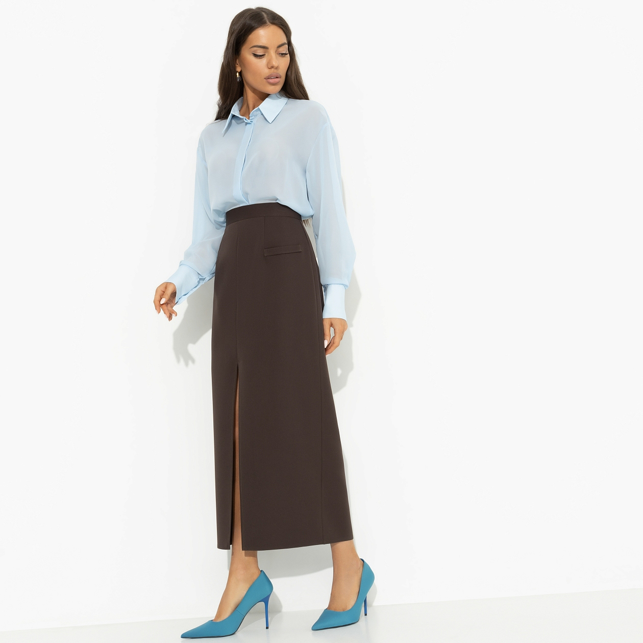 Юбка с разрезом, Дерзкая элегантность (коричневая)