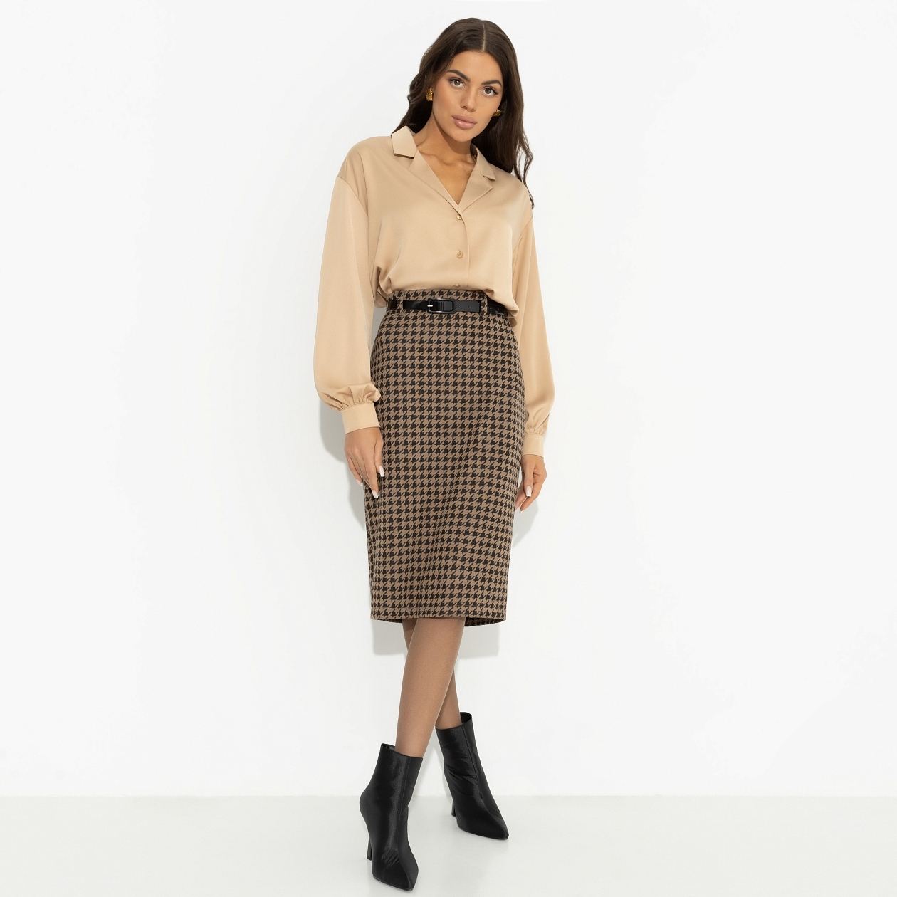Впереди праздники, а ты ломаешь голову над подарком для него. Идея CHARUTTI в том, чтобы приносить радость всем участникам процесса. Тебе – юбка, ему – услада для глаз. Юбка узкая в длине до колена. Есть деликатный разрез сзади. Изделие со шлевками, узкий ремень в комплекте.
