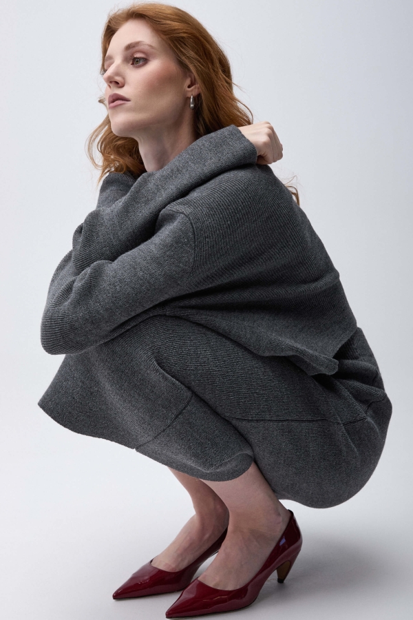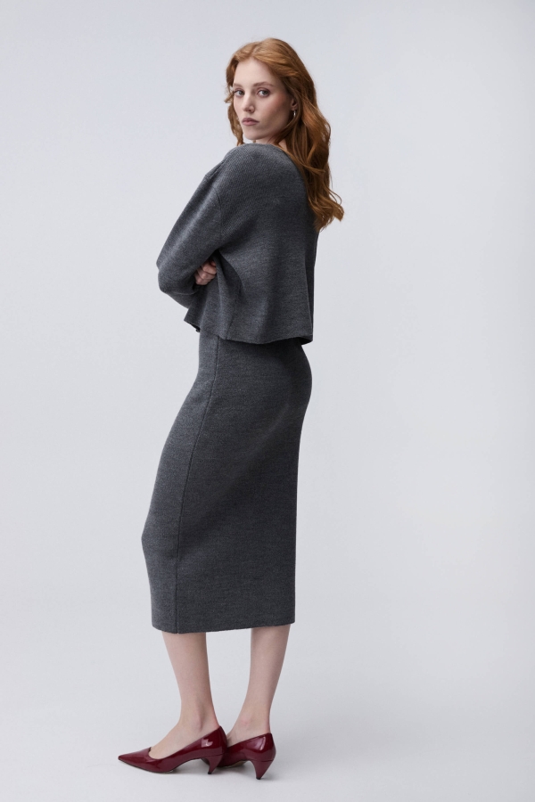 Комфортная юбка из смесовой пряжи. Модель полуприлегающего силуэта. Линия талии укреплена резинкой.