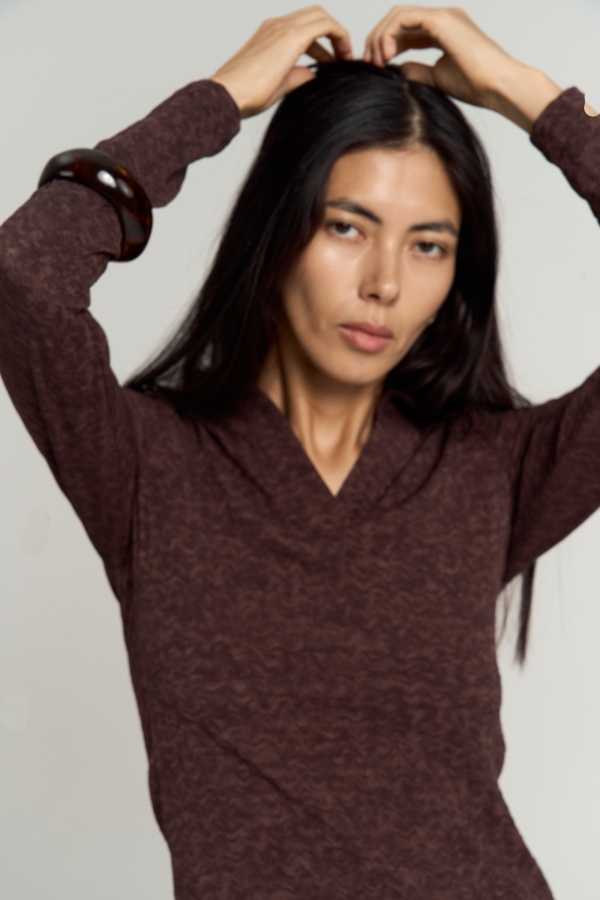 Модель полуприлегающего силуэта. Цельнокроеный пояс на резинке. Изделие на трикотажном подкладе.