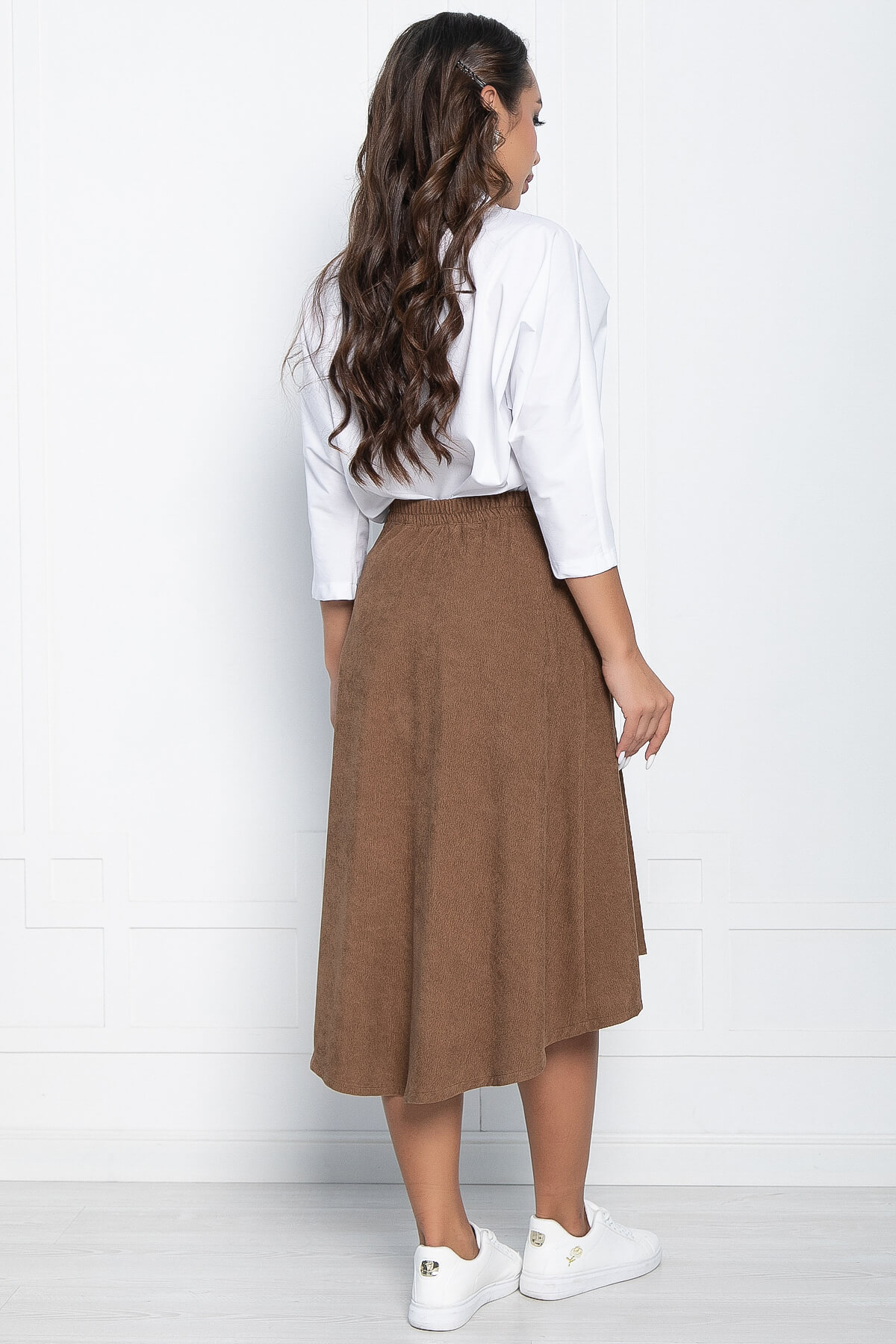 Вельветовая юбка миди это то, что подчеркнет вашу фигуру и добавит стильного шарма вашему образу! Благодаря своему трендовому силуэту и трапециевидной форме, она станет идеальным вариантом для деловых встреч, вечеринок или прогулок по городу.
