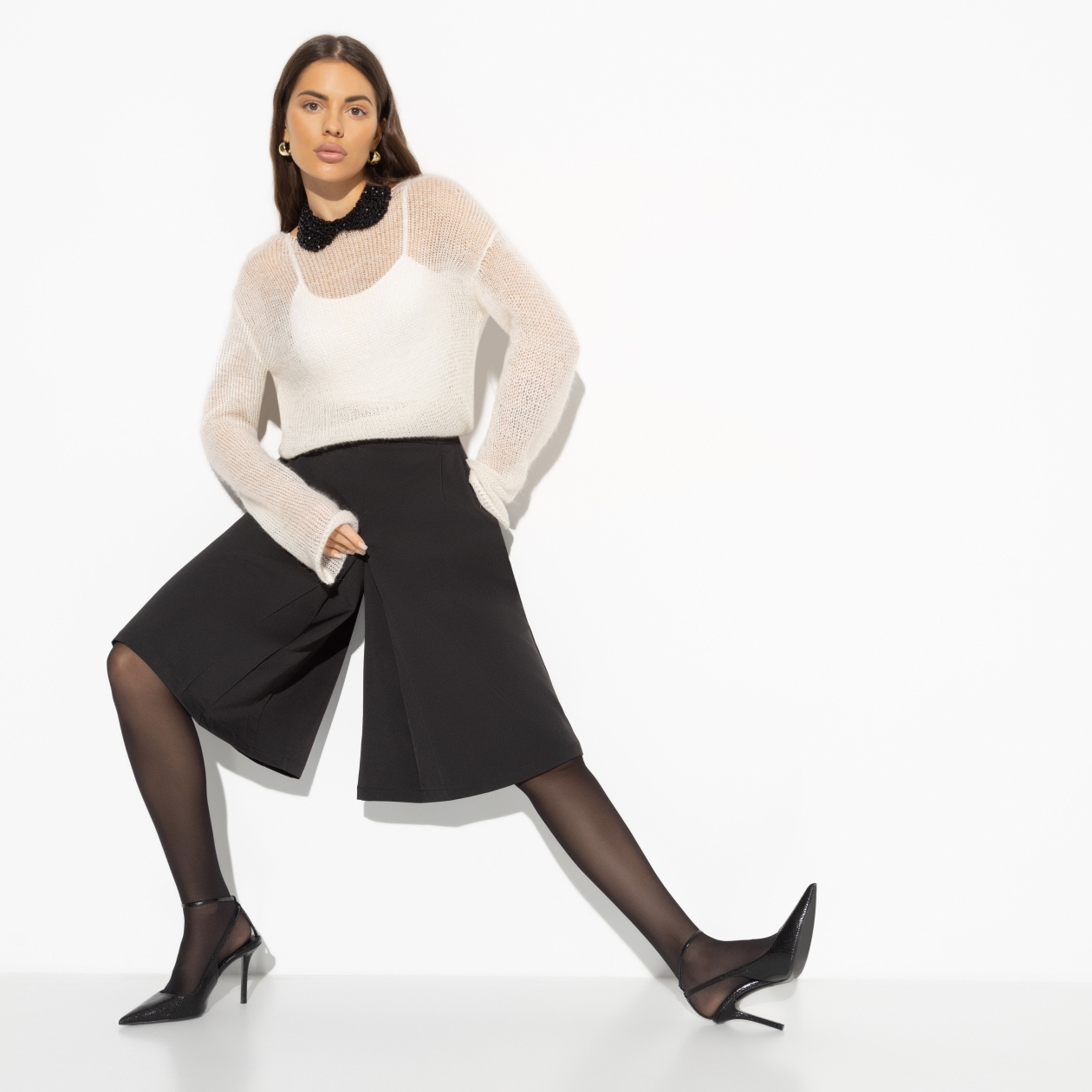 Ты можешь хлопать озадаченно ресницами в ответ на вопрос, как открыть капот. А можешь и поменять масло в своем автомобиле. Все зависит от контекста и обстоятельств. В одной ситуации нужна юбка, в другой шорты. Ты многогранная личность и выбираешь юбку-шорты от CHARUTTI. Юбка-шорты длины до колена. Есть карманы. Посадка на талии. Изделие застегивается на молнию сбоку.