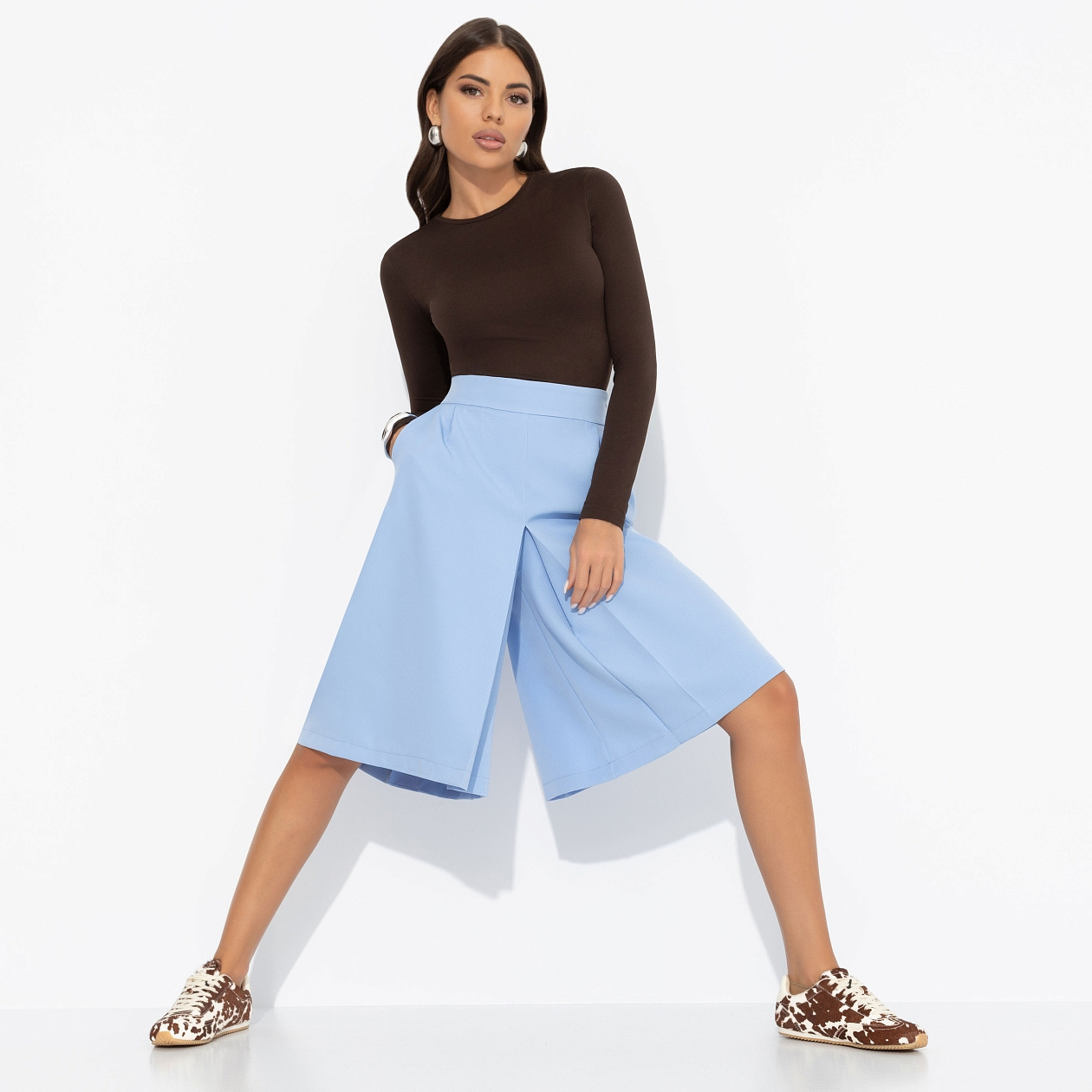 Это был обычный будний день: ты самостоятельно поменяла масло в своем автомобиле, провела пару бизнес-встреч, встретилась с подругами и купила себе букет цветов. Таковы энергии инь и янь в действии. А также эффект юбки-шортов от CHARUTTI. Юбка-шорты – комбинированное изделие. Длина на средний рост – ниже колена. Посадка на талии. Изделие застегивается на скрытую молнию сбоку. Есть карманы.