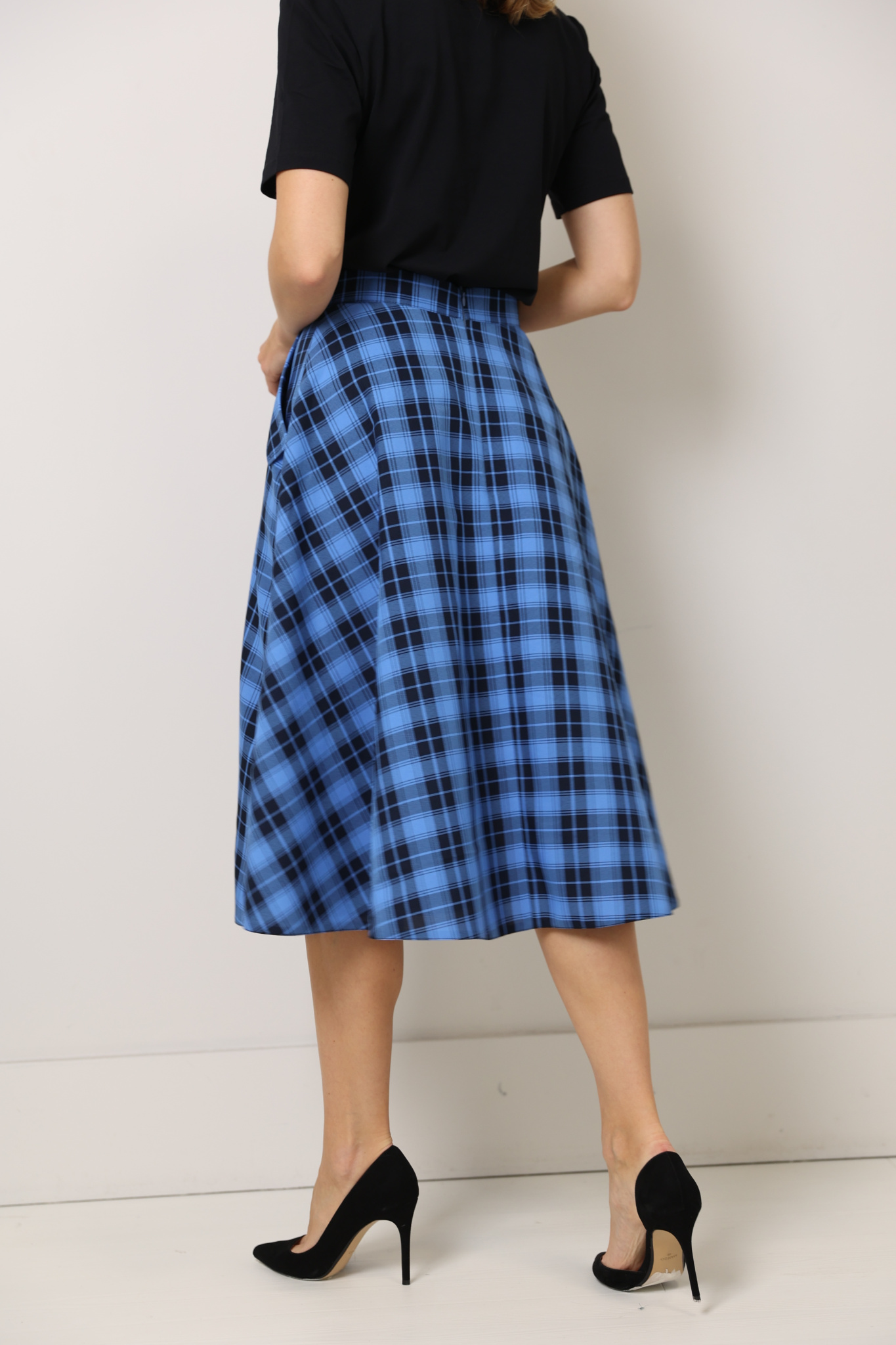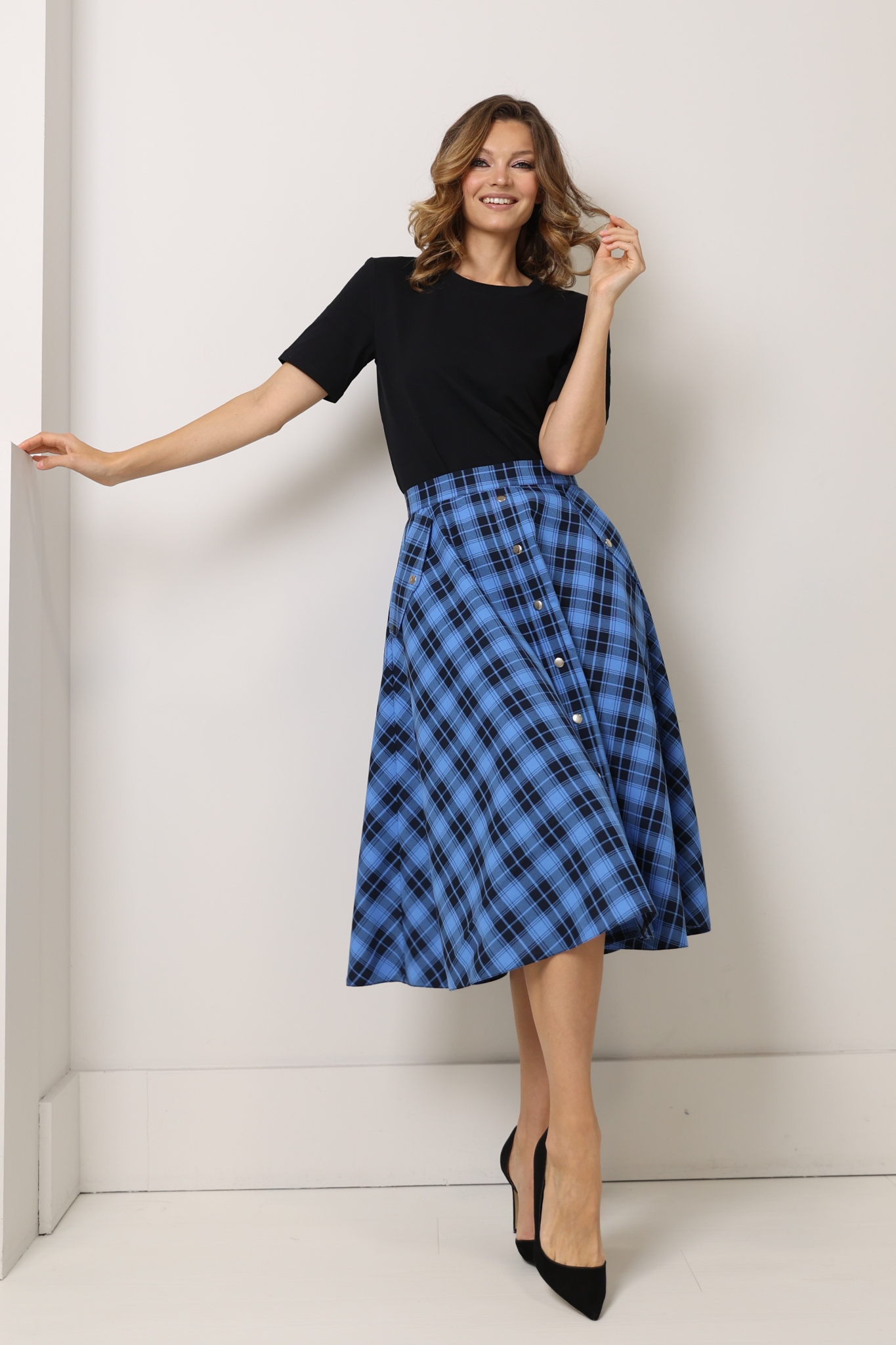 Юбка-трапеция на пуговицах. Карманы в боковых швах изделия с клапанами и фурнитурой. Застёжка- молния сзади. Изделие выполнено без подкладки.