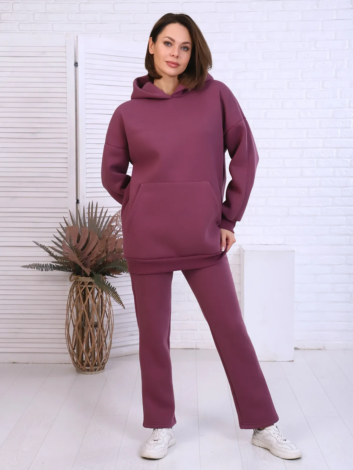 Женские брюки прямого силуэта из футерного полотна с начесом — теплые и удобные для повседневной носки. Модель оснащена практичными карманами и эластичным поясом из кашкорсе, который обеспечивает комфорт и идеальную посадку. Отличный выбор для домашних дел, прогулок и активного отдыха в прохладную погоду.