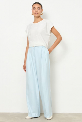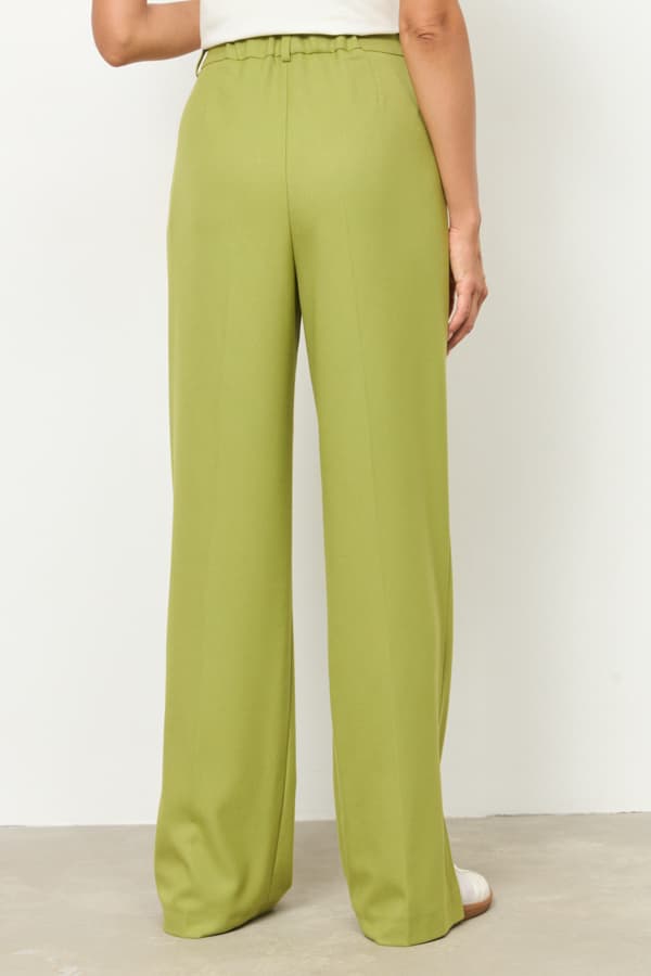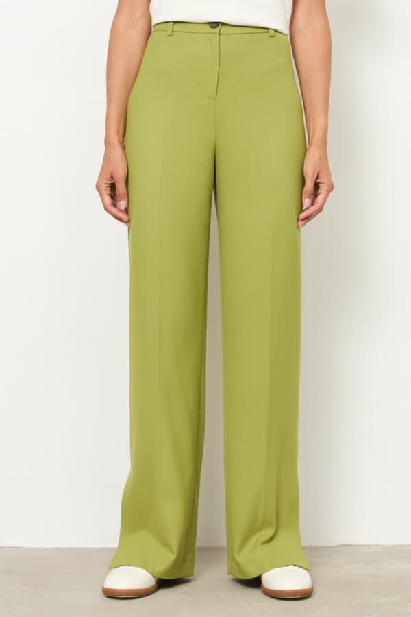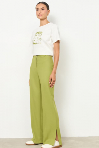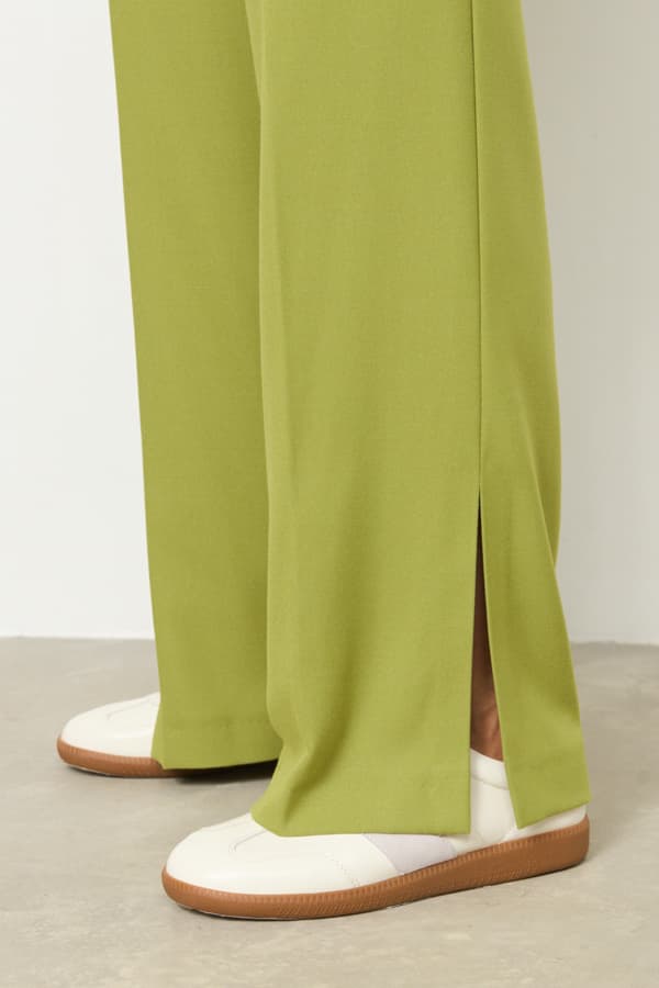 Брюки из костюмной ткани прямого силуэта с разрезами в боковых швах. Застёжка на молнию-гульфик и пуговицу. Притачной пояс со шлёвками. Задняя часть пояса с резиной, что обеспечивает хорошую посадку по фигуре.
