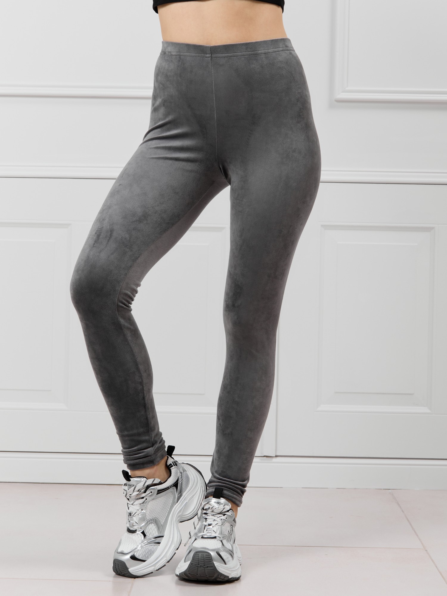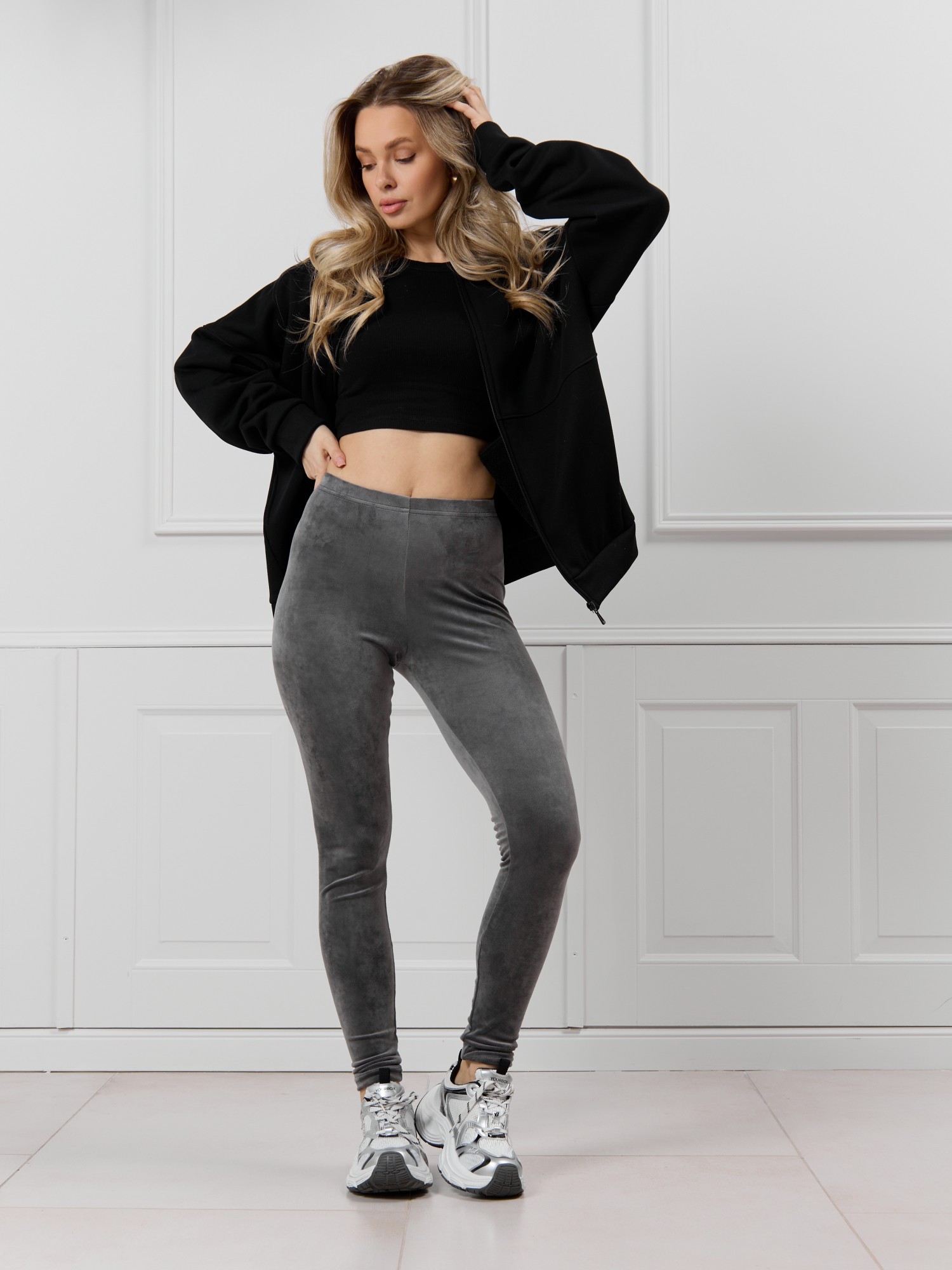 Леггинсы молодежные из трикотажного гладкокрашенного полотна «велюр-стрейч» длинные, облегающие фигуру, с эластичной тесьмой по талии.