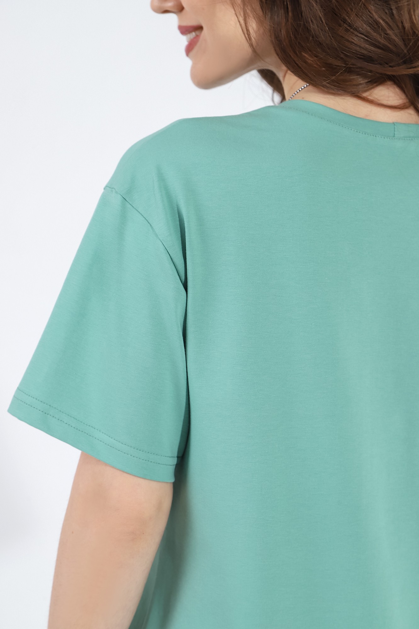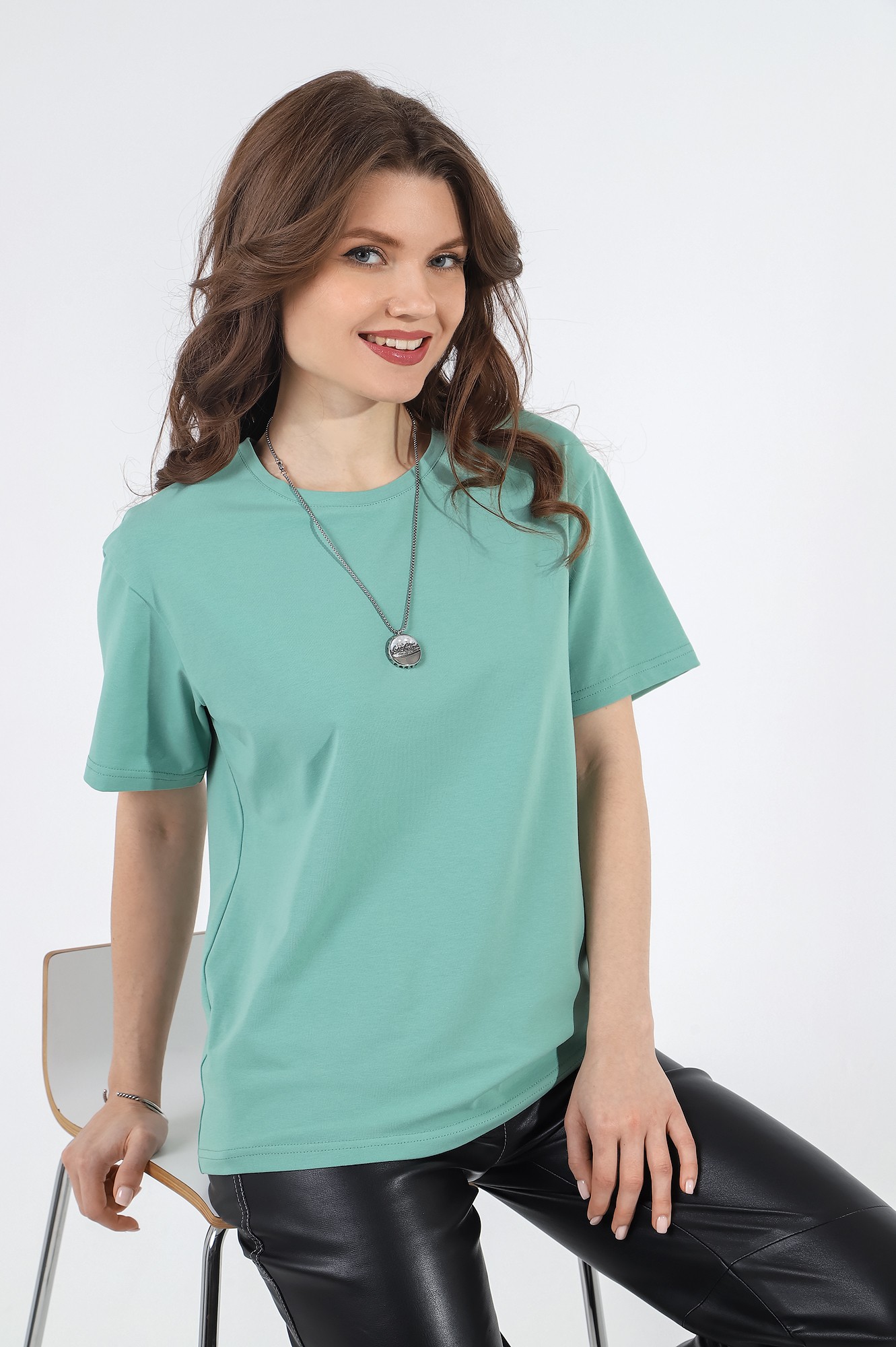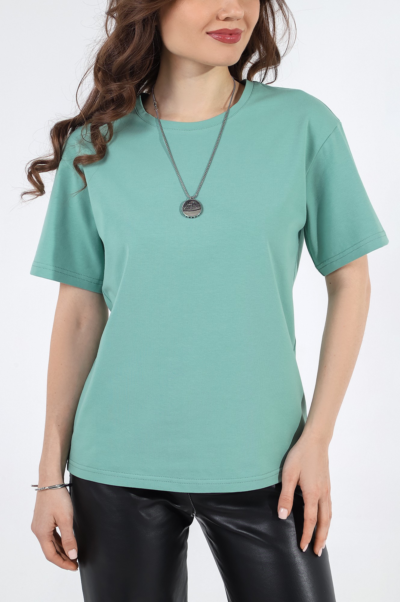 Футболка из гладкокрашеного трикотажного полотна «кулирка с лайкрой», классического покроя, с короткими втачными рукавами, горловиной овальной формы, обработанной втачной планкой.