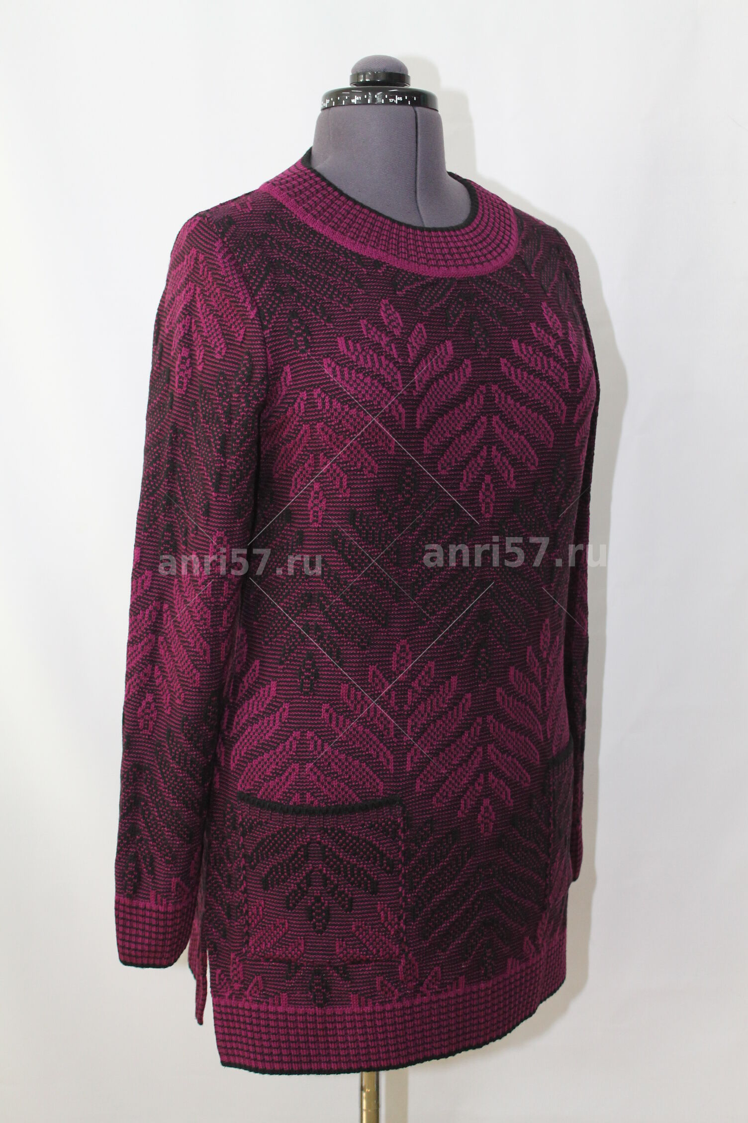 Туника женская ж0509. Туника полуприлегающего силуэта из жаккардового двухцветного вязаного полотна. В боковых швах разрезы. Рукав втачной на "резинке". Горловина округлой формы с обтачкой.