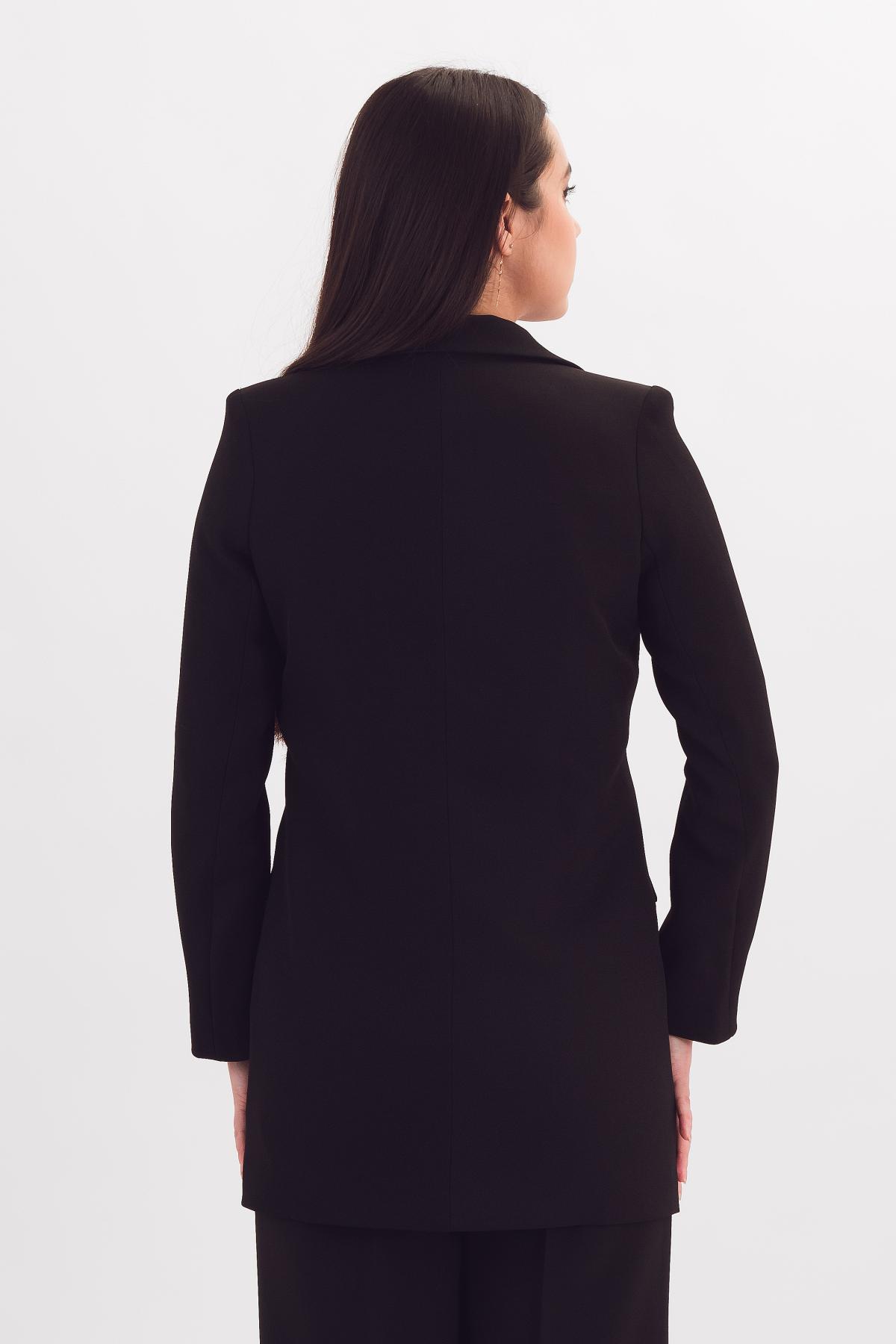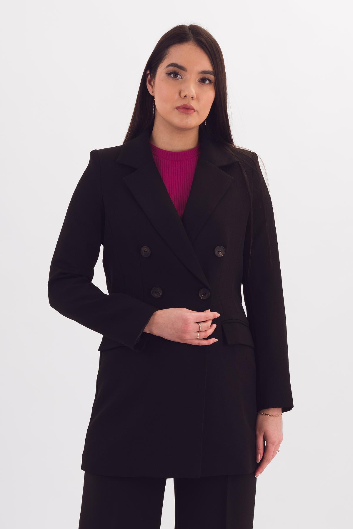 Описание: Стильный удлиненный двубортный жакет на подкладе позволит создать как строгий деловой, так и расслабленный casual образ.
