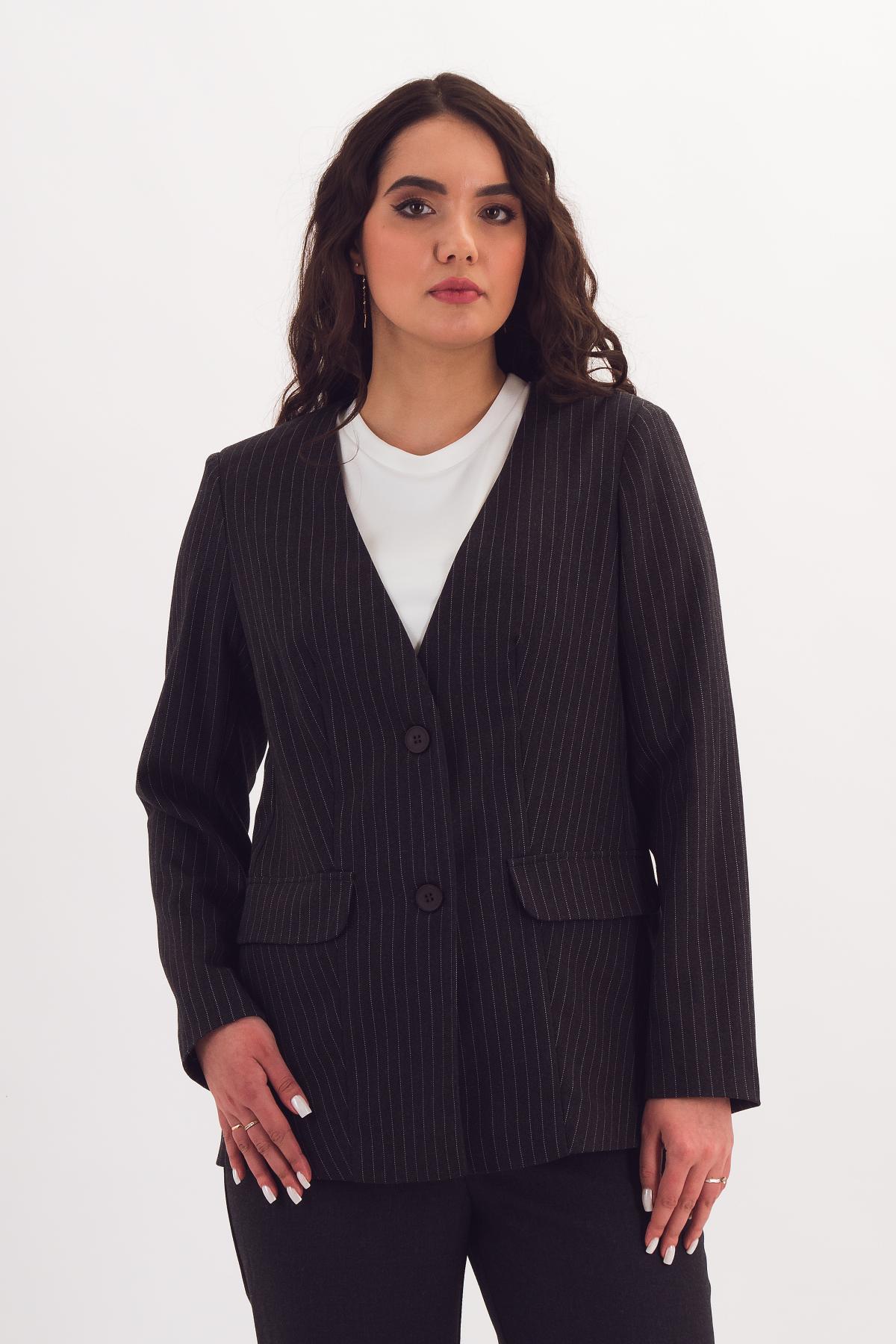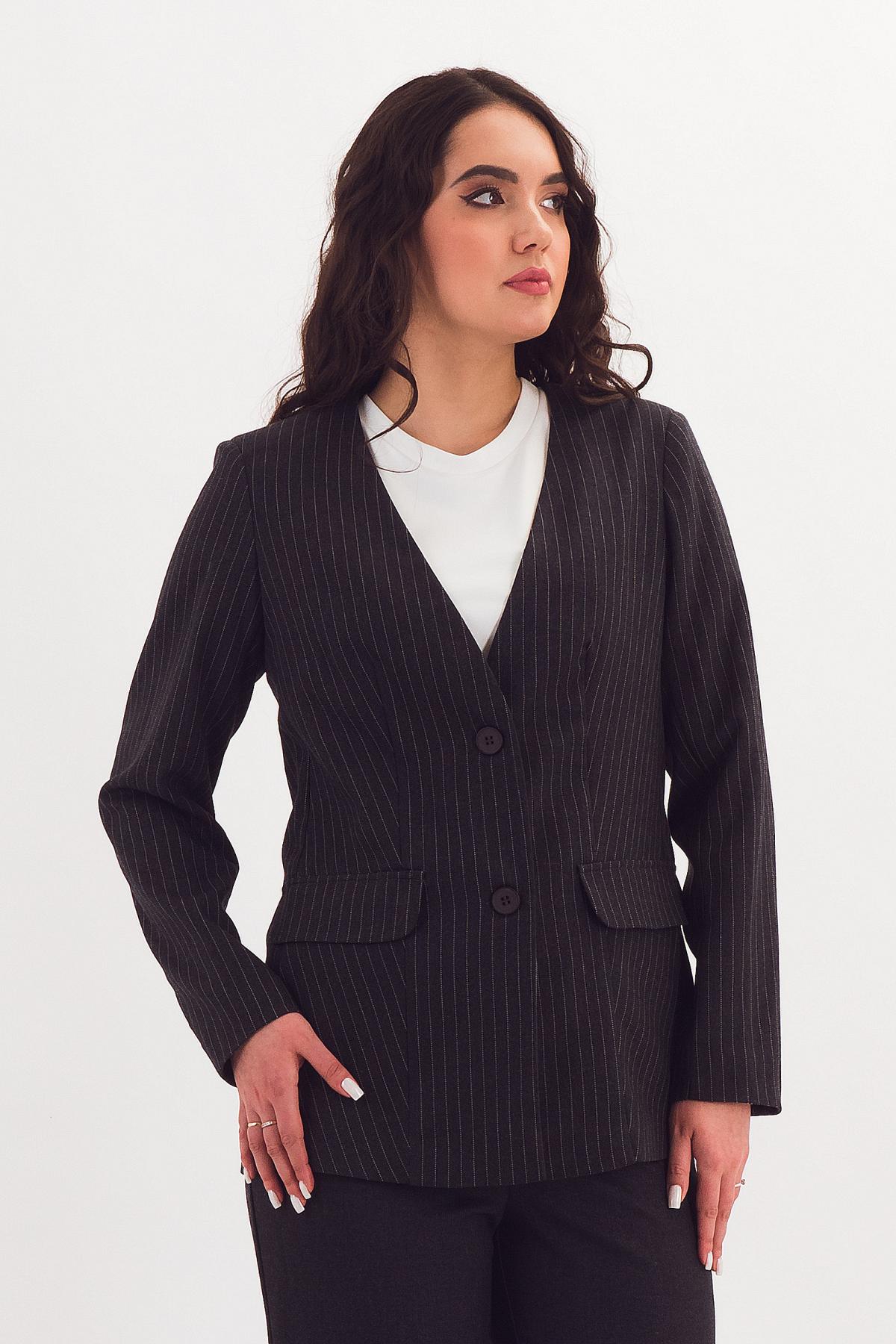 Описание: Классический жакет с двухшовными рукавами с шлицами, V-образным вырезом и рельефами рисует женственный силуэт и зрительно стройнит. Декоративные клапаны по переду завершают элегантный и лаконичный образ. Карманы в боковом шве добавляют в изделие функциональности и удобства. Этот жакет поможет Вам создать элегантный деловой образ!
