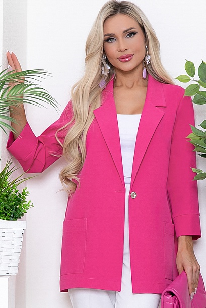 Жакет свободного силуэта из текстильного полотна с застежкой на одну пуговицу.Воротник отложной с лацканами.По переду жакета накладные удобные карманы.