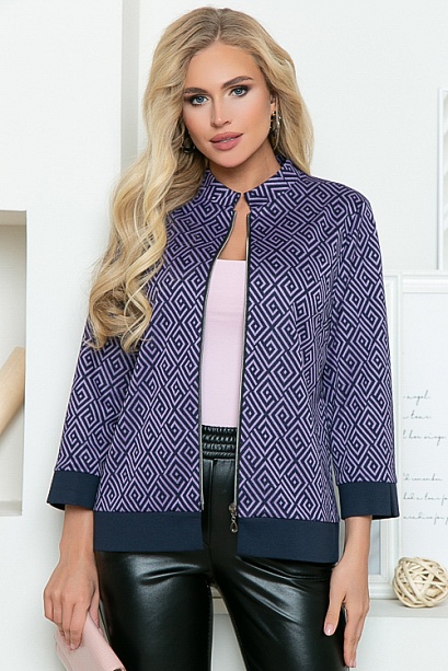 Жакет из жаккардового трикотажного полотна свободного силуэта с центральной застежкой на молнию.