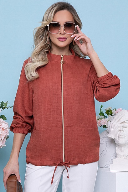 Жакет  свободного силуэта из комфортного,легкого  текстильного полотна,с центральной застежкой на молнию,с функциональными накладными карманами и кулиской по низу.