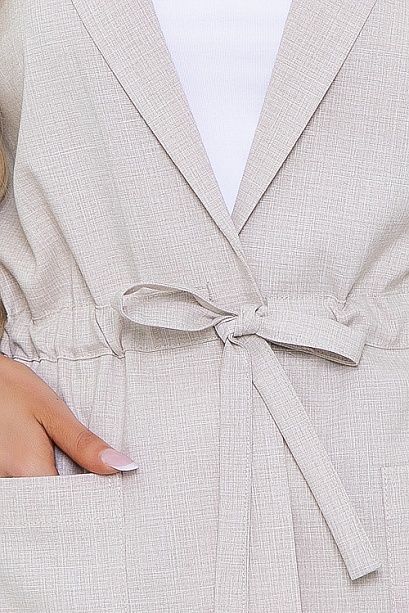Жакет из легкой костюмной ткани свободного силуэта.Воротник отложной с лацканами.По полочке функциональные накладные карманы.