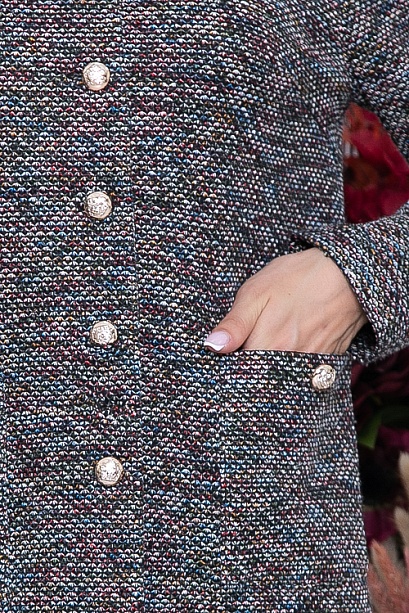 * Жакет прямого силуэта из плотного буклированного трикотажа.Жакет в стиле Шанель. По переду центральная застежка на пуговицы и удобные накладные карманы.