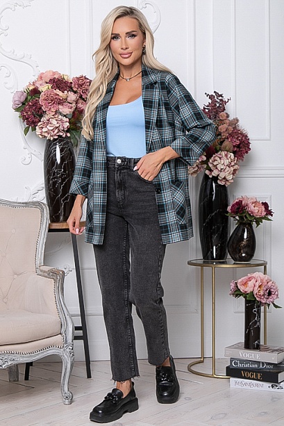 * Жакет из комфортной,качественной костюмной ткани свободного силуэта,в боковых швах разрезы.Центральная застежка на две пуговицы.По переду удобные накладные карманы.