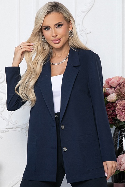 * Жакет из костюмной ткани свободного силуэта. Центральная застежка на две пуговицы. По переду удобные накладные карманы. Рукава втачные.