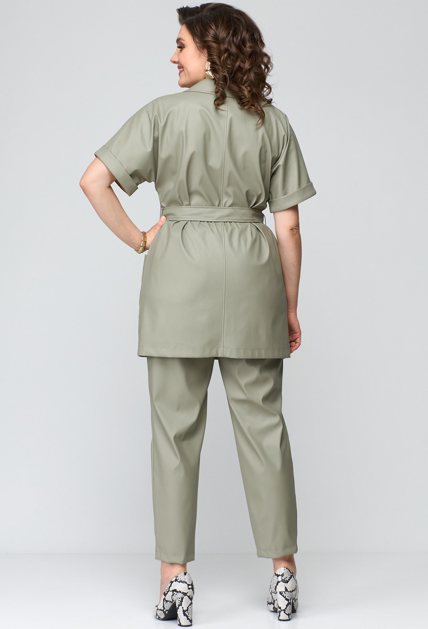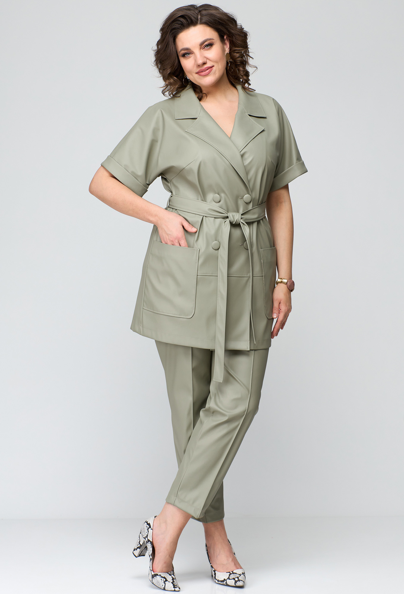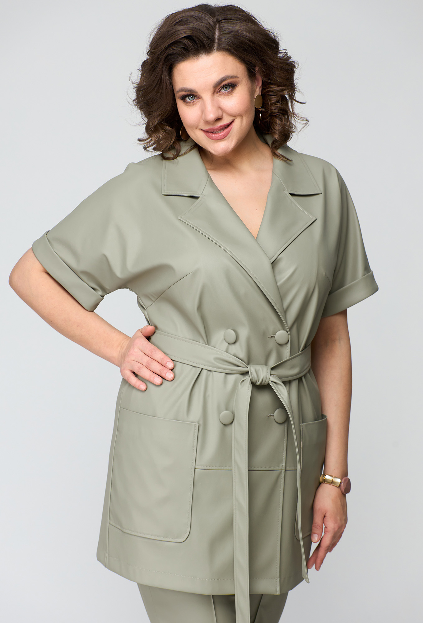 Модель: Анастасия Мак 1089 фисташка <..показатьli>Рост: 164 см (девушка на фото ростом 170см) Сезон: Круглогодичный Тип ткани: 100% ПЭЖакет прямого силуэта, выполнен из экокожи. Полочка с нагрудными вытачками, по нижней части разрезная с накладными карманами. Застежка двубортная на четыре петли и пуговицы. Горловина V-образной формы с отложными лацканами и воротником пиджачного типа. Спинка со средним швом. Рукав длиной до локтя, цельнокроеный, по низу на притачной, отложной манжете. В области талии по боковым швам настрочены шлевки, через которые продет пояс, завязывающийся спереди.