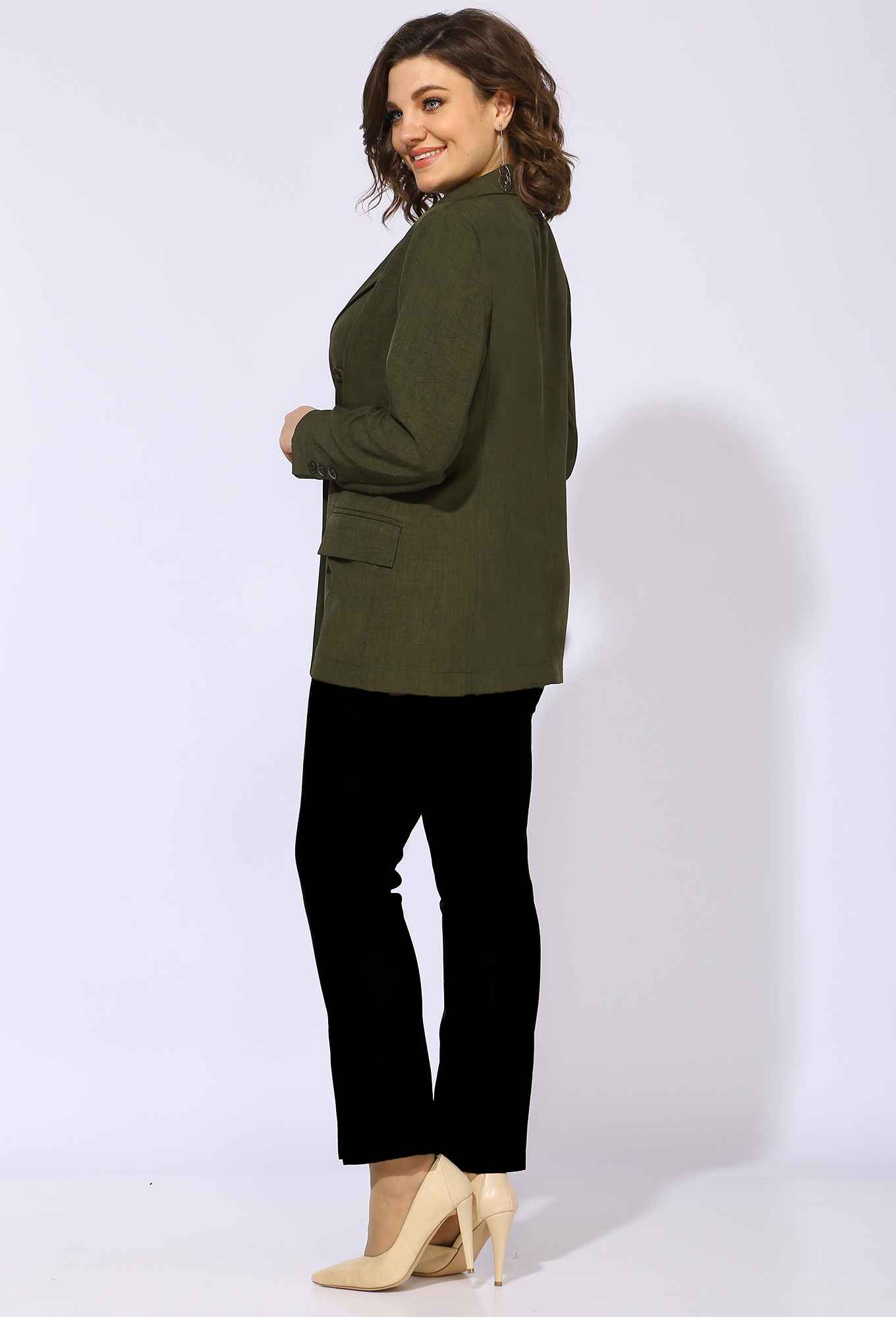 Модель: Анастасия Мак 902Ж зеленый ..показатьi>Рост: 164 см (девушка на фото ростом 170см) Сезон: Весна-Лето Тип ткани: 71% Вискоза, 24% ПЭ, 5% СпандексЖакет прямого силуэта, без подклада. Перед жакета с вертикальными вытачками, двубортной застежкой на петли и пуговицы и прорезными карманами с клапанами. Жакет с отрезным бочком без бокового шва. Горловина V – образной формы, с отложными лацканами и воротником пиджачного типа. Спинка со средним швом. Рукав втачной, длинный, двухшовный, со шлицей.