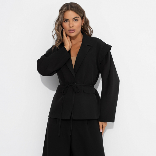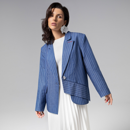Асимметрия как искусство. Свободный силуэт с небрежной элегантностью и безупречная конструкция. Авангардный крой с намеренно смещенной линией подола изделия показывает вашу креативность. Каждый шов продуман для идеальной динамики движения. Акцентный подклад украсит вашу повседневность. Это не просто жакет – это скульптурный объект, где каждая деталь говорит о безусловном превосходстве. Жакет однобортный с лацканами свободного кроя. Изделие с карманами на подплечниках.