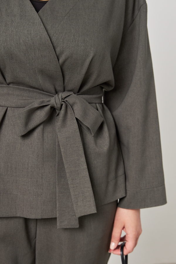 Свободный жакет-кимоно прямого силуэта на запах. Пояс из основной ткани в комплекте.