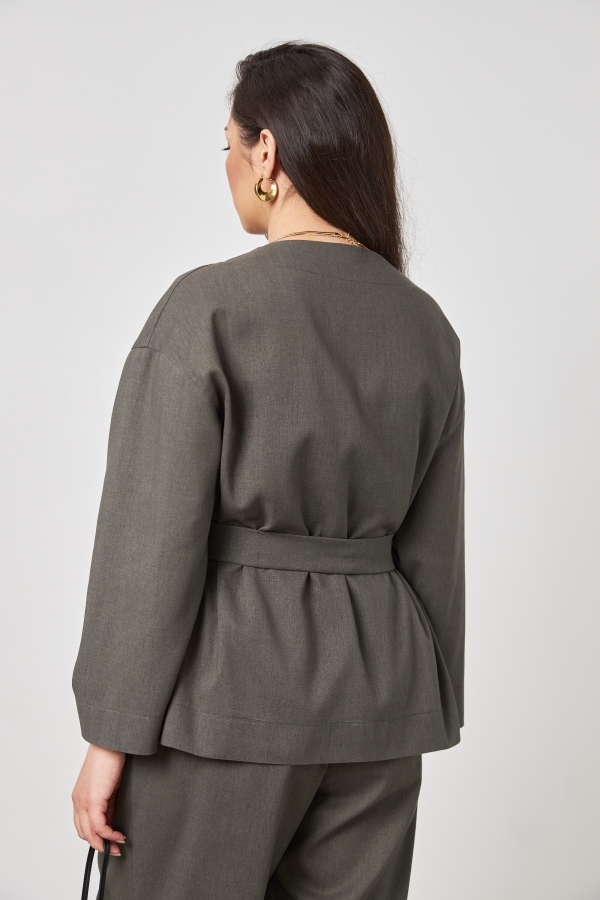 Свободный жакет-кимоно прямого силуэта на запах. Пояс из основной ткани в комплекте.