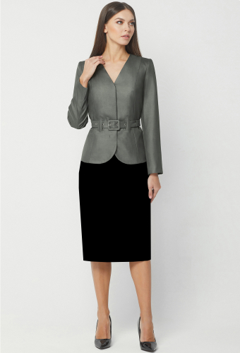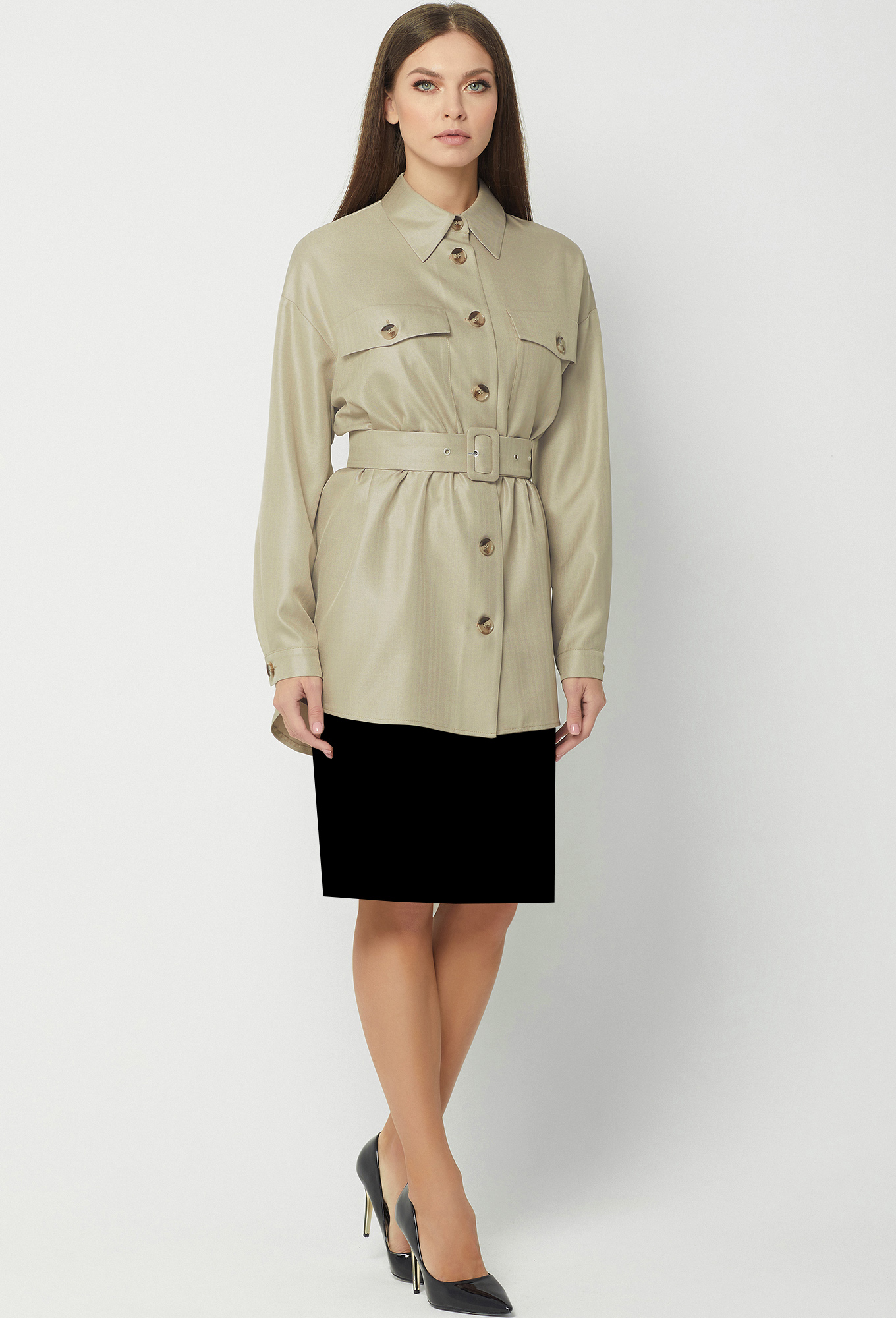 Модель: Базалини 4245 песочный Ро..показатьст: 164 см (девушка на фото 170см) Сезон: круглогодичный Тип ткани: Полиэстер- 65%, Вискоза- 32% , Эластан- 3%Жакет свободного кроя, со спущенной линией плеча и разным уровнем низа переда и спинки. Перед с центральной застежкой на петли и пуговицы и двумя накладными карманами с клапанами и декоративными пуговицами. Рукава рубашечного типа с манжетами и застёжкой на петли-пуговицы. Воротник отложной с отрезной стойкой. Дополняется поясом с пряжкой из основной ткани.