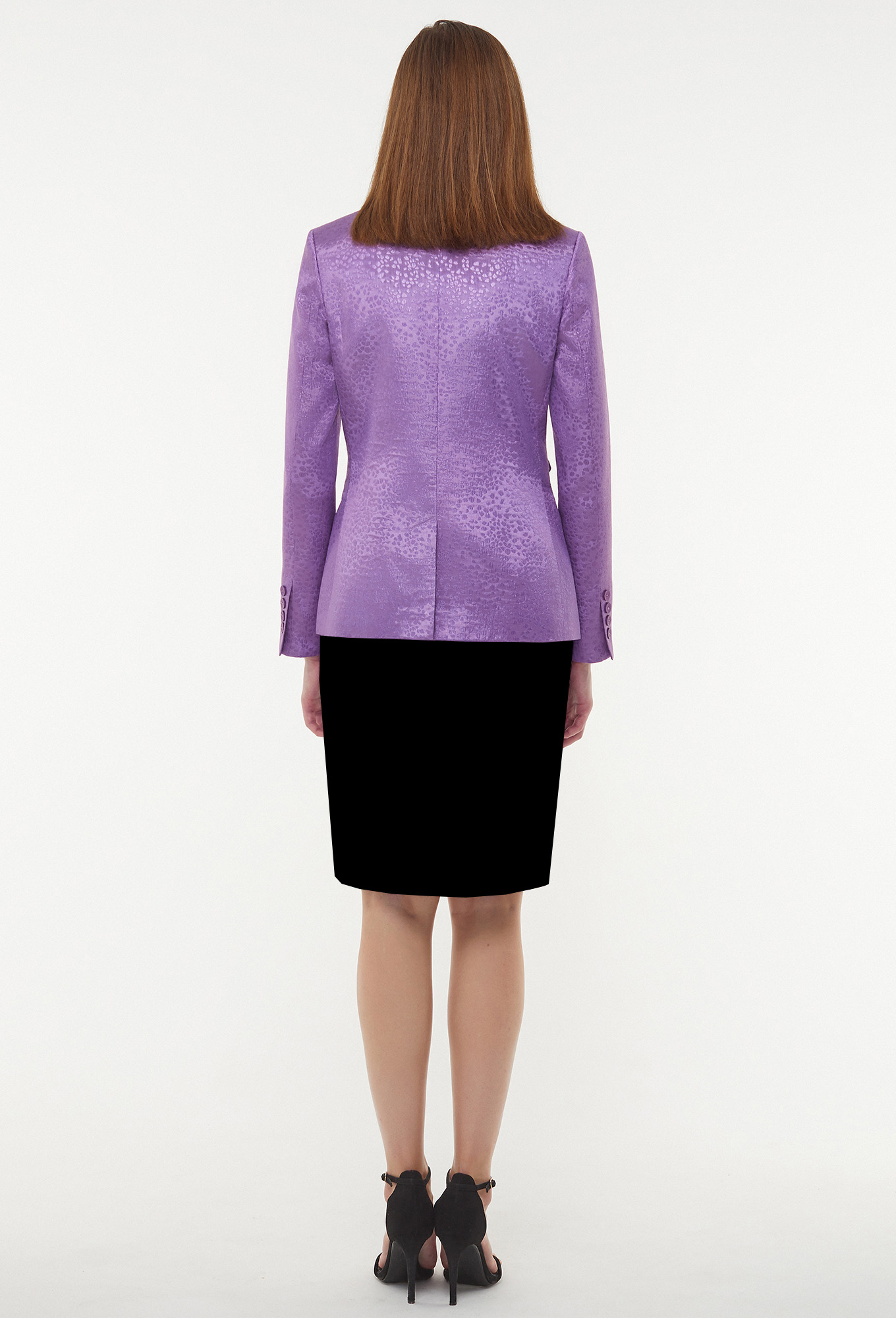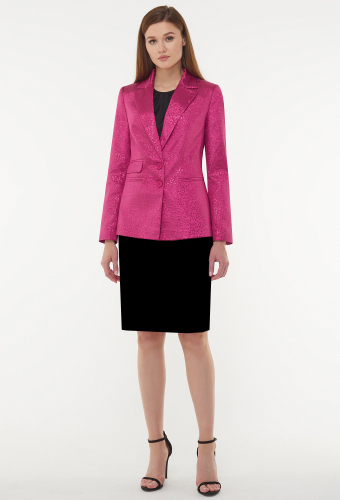 Модель: Базалини 4258 фиолет Рост..показать: 164 см (девушка на фото 170см) Сезон: Круглогодичный Тип ткани: 75% полиэстер, 23% вискоза, 2% эластанЖакет - стильный однобортный жакет полуприлегающего силуэта выполнен из жакарда с рисунком «гусиная лапка», перед с застежкой на петли и пуговицы, двумя горизонтальными карманами и рамками и одним карманом-обманкой с рамкой и клапаном. Средний шов спинки заканчивается шлицей, рукава втачные двушовные со шлицами и отделочными пуговицами. Воротник отложной с лацканами, на подкладке.