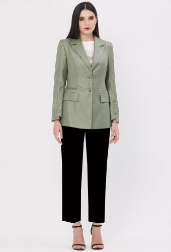 Модель: Базалини 4445 хаки Рост: ..показать164 см (девушка на фото 170см) Сезон: круглогодичный Тип ткани: 65% полиэстер, 32% вискоза, 3% эластанИнтересный однобортный жакет полуприлегающего силуэта. Более женственной данную модель делают округлые лацканы, а новое звучание придают смещенные вперед шлицы с отделочными пуговицами и фигурная форма низа рукавов. Жакет с застежкой на петли-пуговицы, с двумя функциональными карманами с клапанами и с двумя карманами обманками. На подкладке.