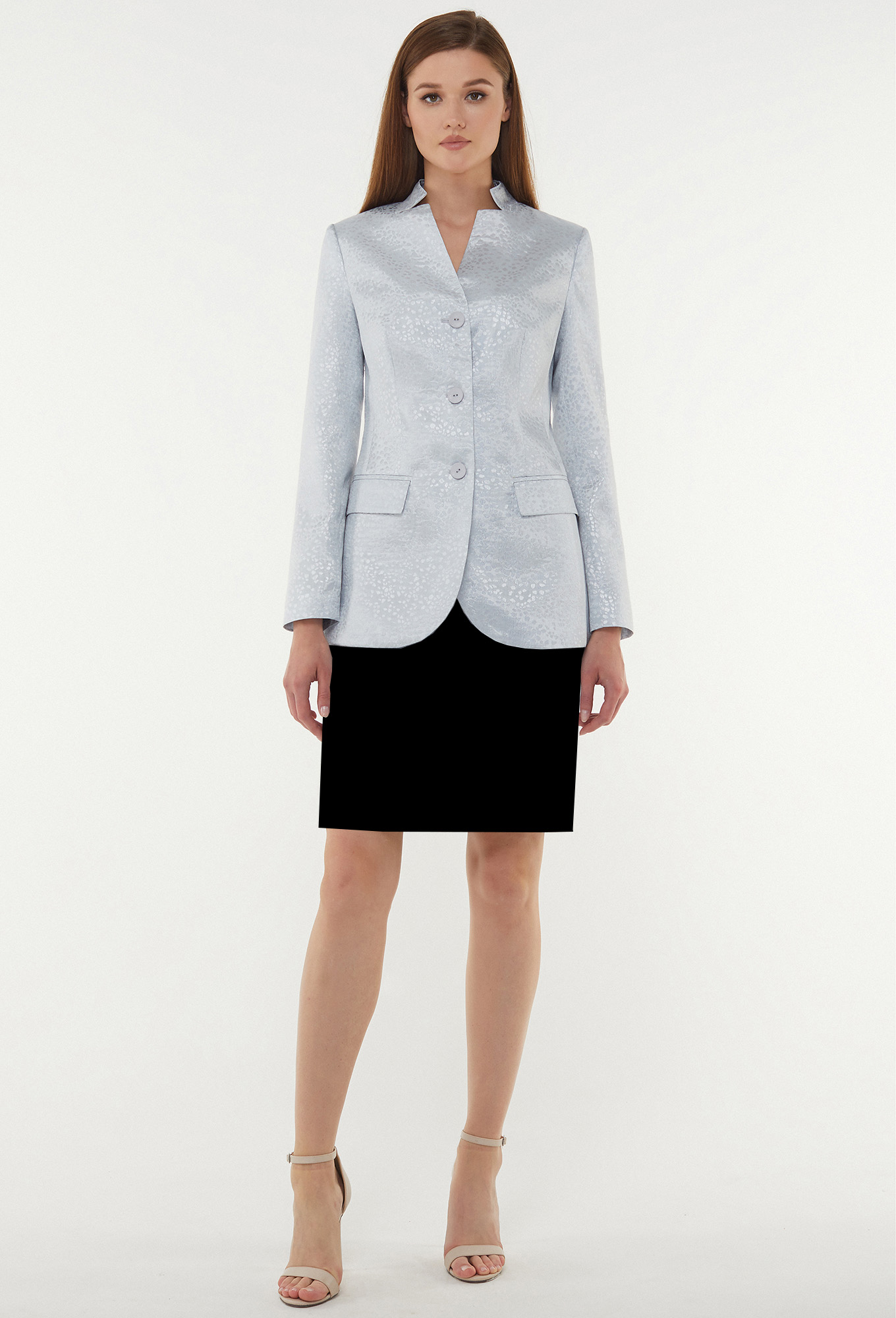 Модель: Базалини 4489 серебро Рос..показатьт: 164 см (девушка на фото 170см) Сезон: Круглогодичный Тип ткани: 65% полиэстер, 32% вискоза, 3% эластанУдобный однобортный жакет полуприлегающего силуэта. Перед с фигурным вырезом горловины, с застёжкой на петли-пуговицы и двумя функциональными карманами с рамками. Ррукава втачные двушовные. Воротник-стойка, на подкладке.