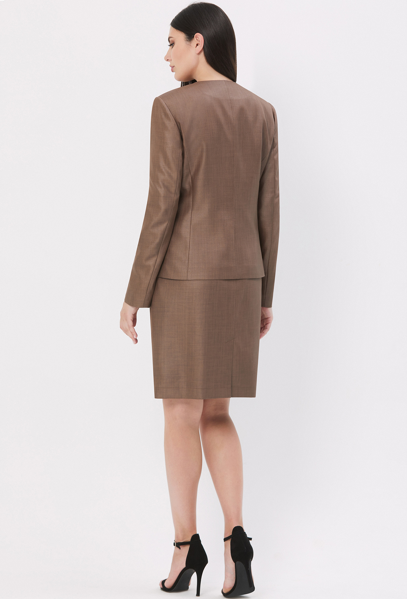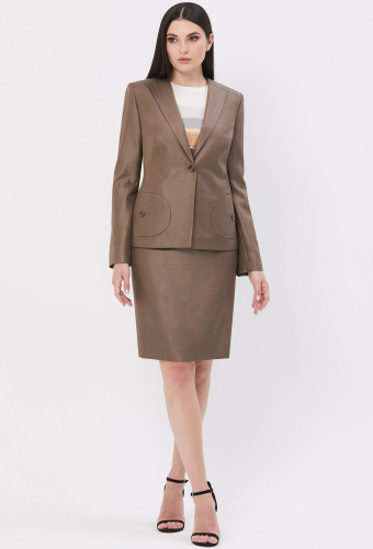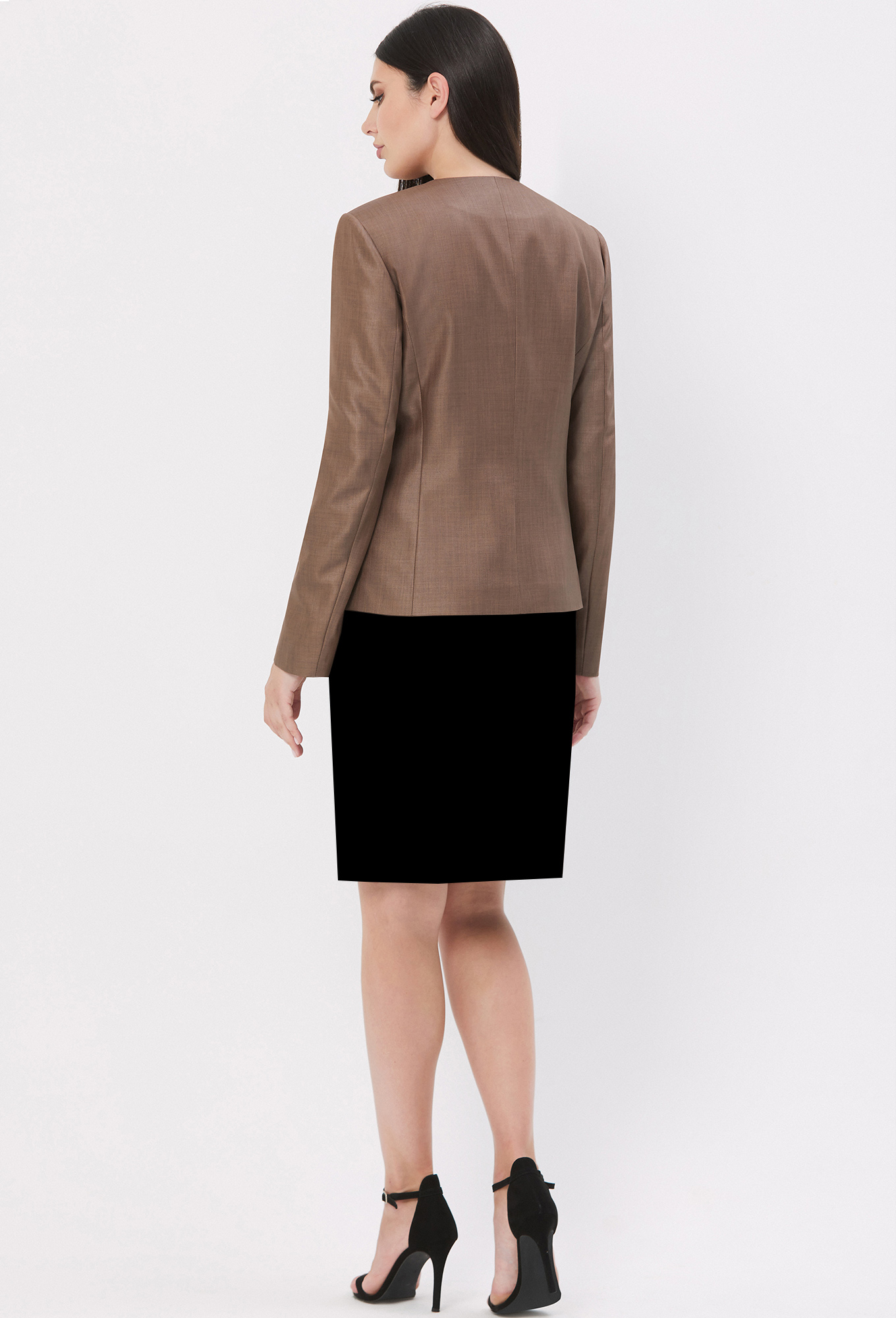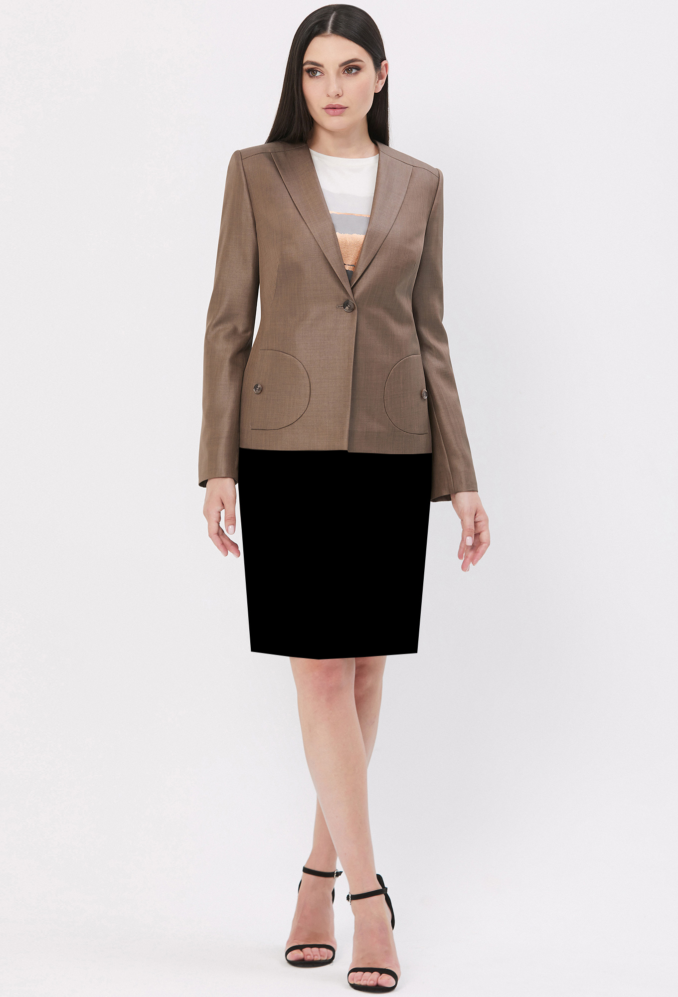 Модель: Базалини 4540 коричневый ..показатьРост: 170 см (девушка на фото 170см) Сезон: Круглогодичный Тип ткани: 65% полиэстер, 32% вискоза, 3% эластанЖакет интересного кроя, перед с глубоким V-образным вырезом горловины, с центральной застёжкой на петлю и пуговицу, с кокетками и лацканами со втачными концами, косыми вытачками и фигурными накладными карманами с отделочными пуговицами. Рукава втачные двухшовные. На подкладке.